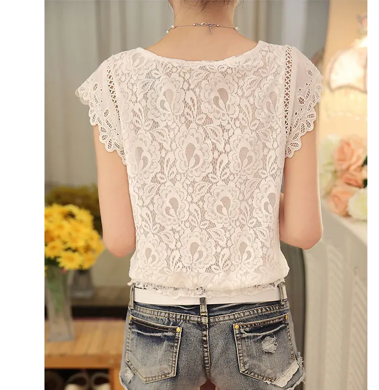 Новинка 2017, летняя мода, Лидер продаж, корейские женские топы, Женская белая блузка с коротким рукавом, кружевная шифоновая Женская тонкая рубашка 01A 25