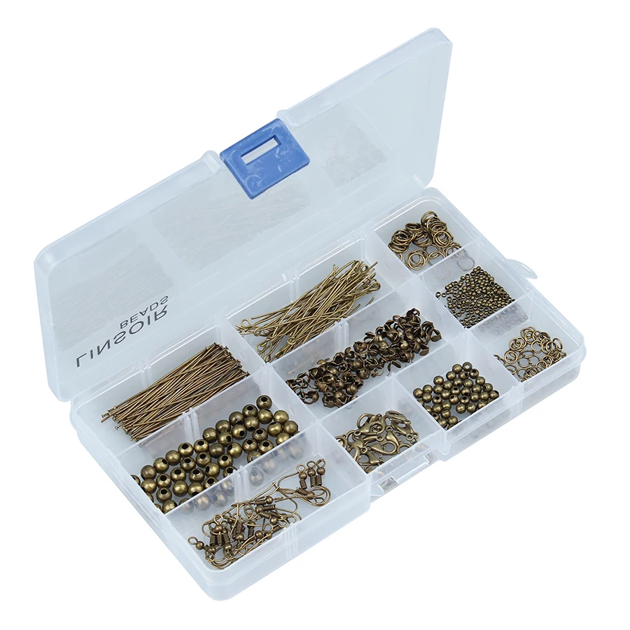Колпачки для бусин под золото и бронзу, комплект аксессуаров для изготовления ювелирных изделий, шпильки с головкой, проволока для ушей, карабин, фурнитура