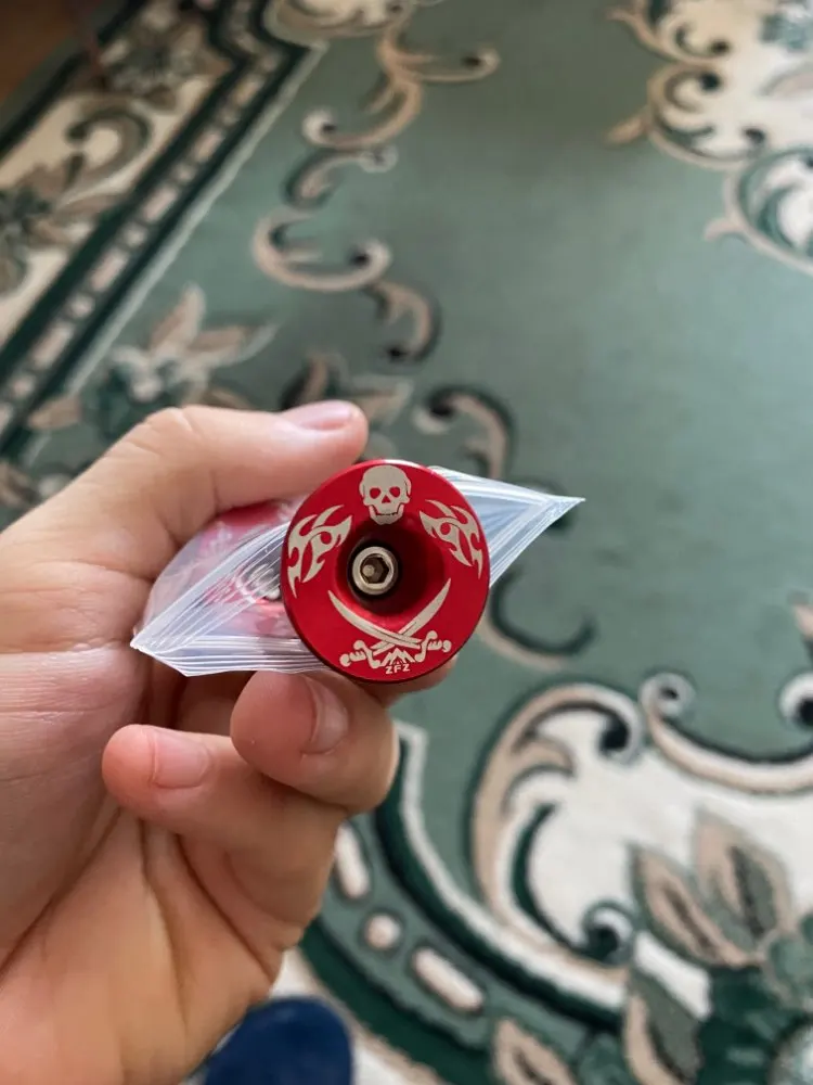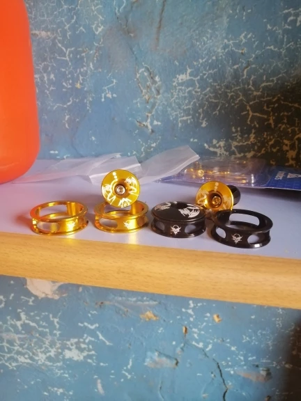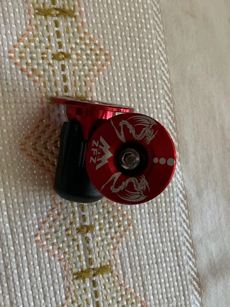 Это красивый продукт, очень легкий, только центр с отверстием в форме оторванного конуса, который, когда вы видите, отсоединяет пластиковую вставку в трубку ручки рулевого колеса, Оба не имеют достаточного диаметра, чтобы вставить даже болт BTR, закрепленный внизу, можно было заблокировать этот штекер на верхнем уровне мощности. Внутренняя часть диаметра полюса моей вилки измеряет: 25 миллиметров, а внутренняя часть этой крышки закрыта внизу: 22 миллиметра. Но я, безусловно, найду аферу, чтобы вставка выходила больше, чтобы она заблокировалась внутри трубки, и она может удерживать крышку, которая также хороша в анодированном металле красного цвета. Я не думаю, что увидел эти крышки с большим внутренним диаметром, слишком плохо, потому что я думаю, что трубки формы вилки имеют стандартный диаметр, но я не уверен, В противном случае из-за этой проблемы это идеально.