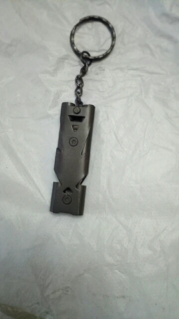 Громко свистит, на два тона. Полностью металлический. С цепочкой и кольцом: можно использовать, как брелок для ключей или повесить на пояс или карабин. В целом вещь забавная, но если говорим о выживании, то он пригодится, чтобы подавать сигналы на расстояние метров до 500 - 800. То есть, если идёшь в лес с компанией, то не заблудиться поможет.