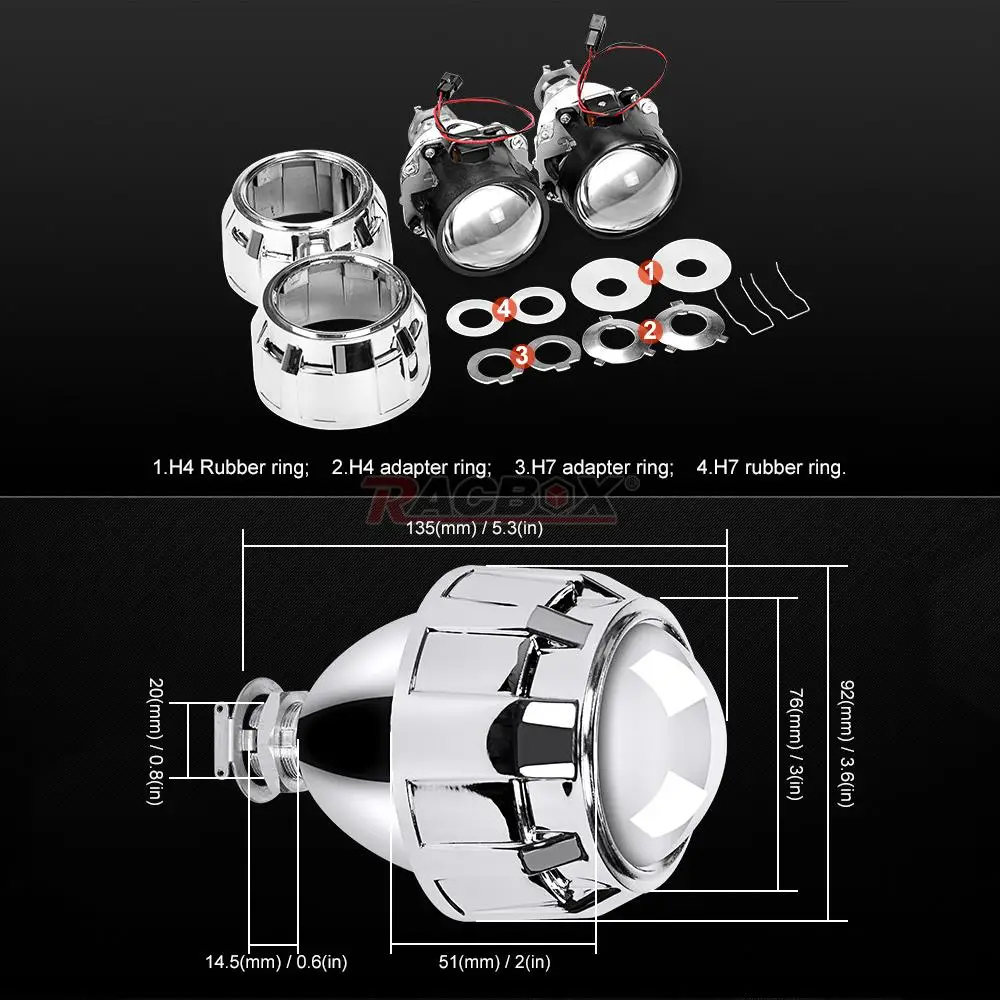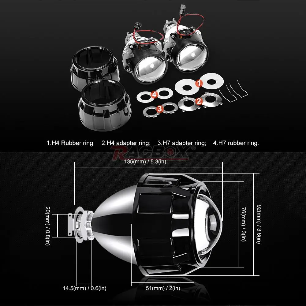 2. Вы устанавливаете все проекторы, а не только лампы, к вашему корпусу фары. Вы получите адаптеры H4 и H7, поэтому проектор может быть очень хорошо помещен в гнездо H4 или H7.