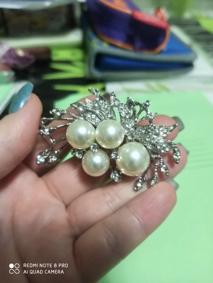 Симпатичная брошь. У меня уже несколько подобных, только без жемчуга. Носятся отлично. Из минусов - длительная доставка. Деньги за доставку продавец взял, а отправил дешёвым отправлением без отслеживания. Считаю это непорядочностью со стороны продавца. Я оплачиваю доставку, чтобы отслеживать мою посылку, а не ради экономии денег продавца. Не рекомендую продавца, а товар рекомендую. Броши эти хороши.