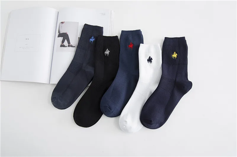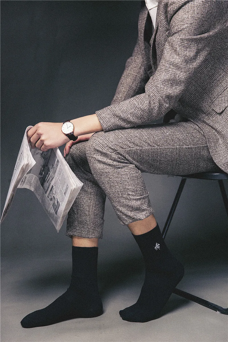 Носки мужские повседневные, брендовые с вышивкой, хлопковые, 5 парыЛот, зимние