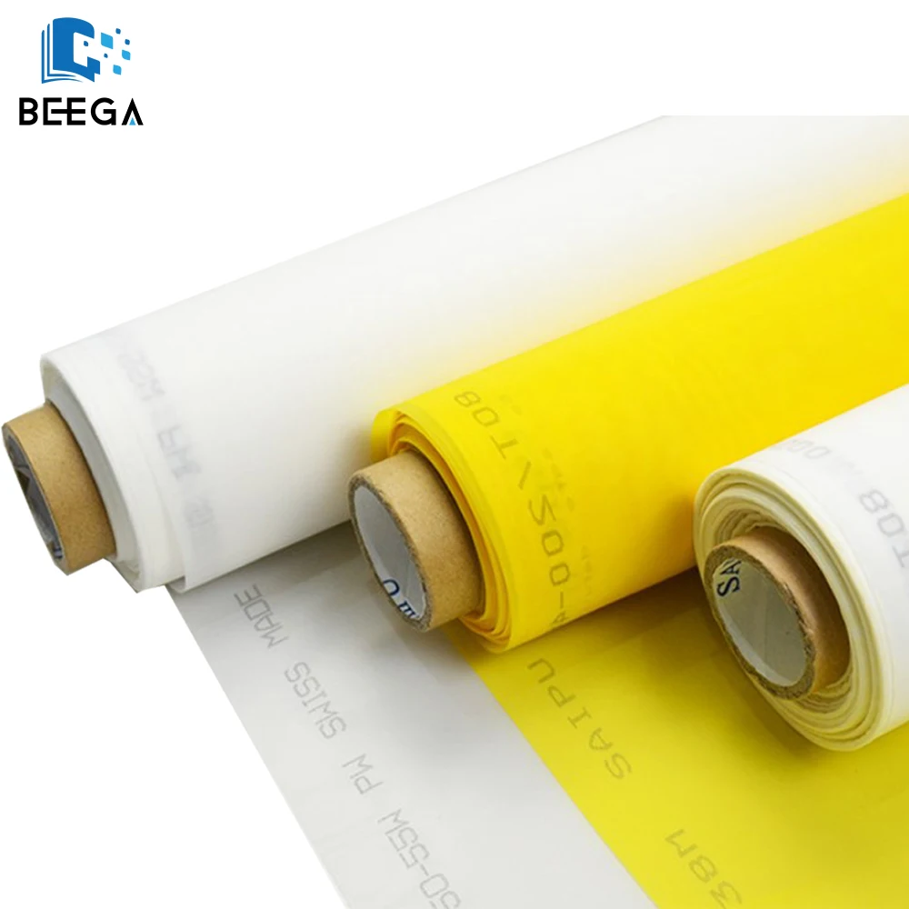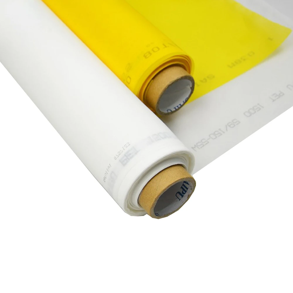 Ткань используется как сторонник трафарета с блокировкой чернил. Полиэстер заменил традиционный шелк как ткань на выбор среди принтеров по всему миру из-за его прочности на растяжение, упругости памяти и стойкости к химическим веществам, истиранию тепла и влаги. Полиэстер сплетен из пряжи, которая экструдируется из нагреваемого полиэстера в одну прядь. Экструдированная резьба-это закрученная до точного диаметра.