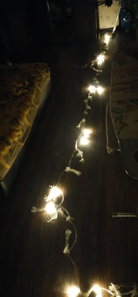 очень красивые огоньки, в длину 4 метра, как мне и нужно было. единственное, они не до пола, как я ожидала, но все равно хорошо получилось