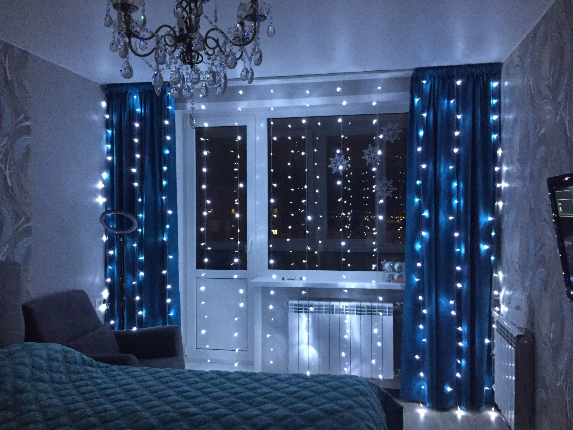 Гирлянда создаёт уют и праздничное настроение. Красиво смотрится за полупрозрачными шторами.