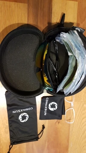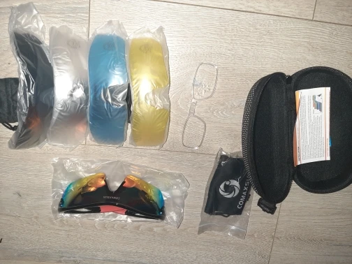 Товар пришел быстро, около 2х недель в Нидерланды. Все без повреждений, упаковано нормально. Набор, как на фото продавца, все соответствует. Качество для своей стоимости нормальное. Стекла меняются без проблем, поляризованное стекло действительно тоньше остальных. Но у меня оно не болтается, как писали, а держится нормально. Очки легкие. Наносник регулируется по ширине, можно добиться идеальной посадки. Окчи лучше подойдут на крупное лицо, мне немного великоваты) Единственный минус - дужки поменять на резинку так и не смогла- побоялась, что сломаю. Продавца рекомендую!