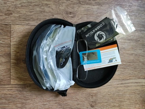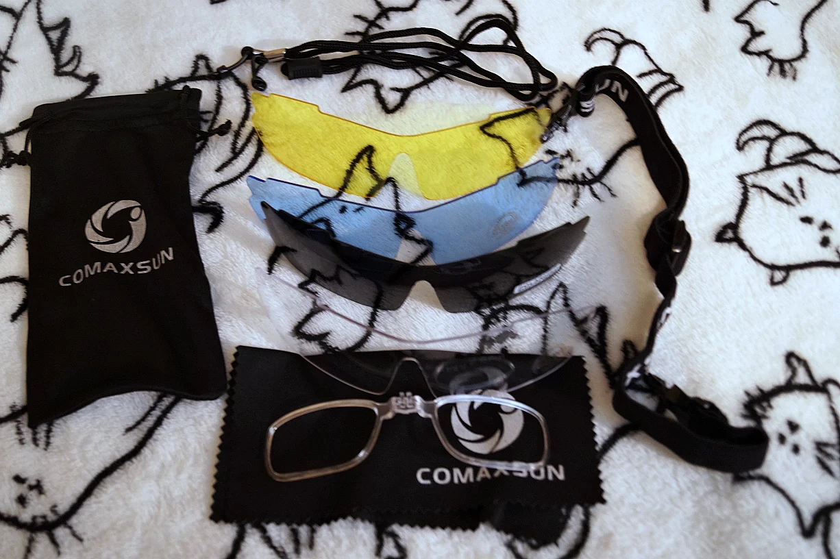 Посылка шла 2 недели на Урал, чехол целый немятый. Очки сидят хорошо, не уменьшаю обзор, при этом полностью закрывают глаза. Замена линз делается не сложно.