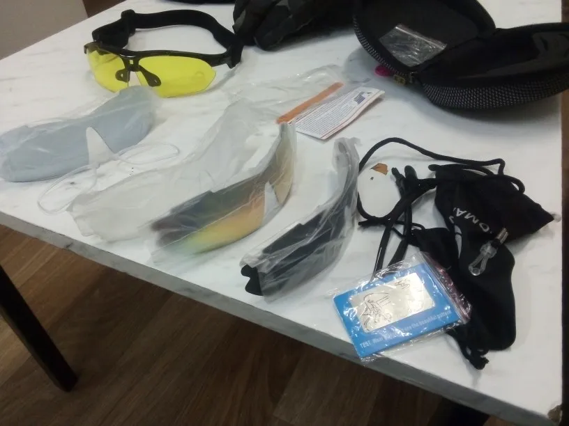 доставка быстрая . Очки норм . Пришел комплект из оправы и 5ти стекол одно поляриз. остальные нет как и говорилось в описании 3 стекла имеют наклейку uf 400 их у меня проверить не на чем . стекла меняются легко . легко ремень установить , с ремнем удобно ездить на велике а с желтым стеклом в снегопад отлично даже при минус 20 . ещё в комплекте шнурок для очков и картинка поляризации. в общем я доволен .