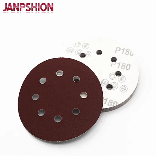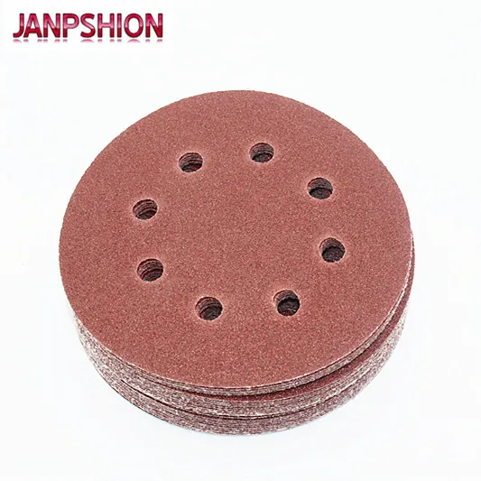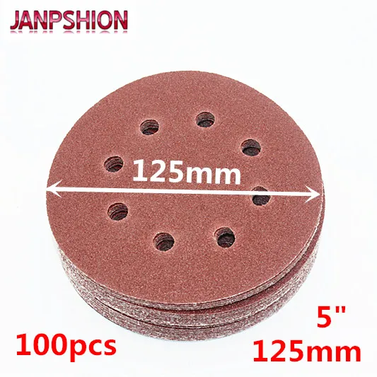 JANPSHION 100 шт. 125 мм крючок и петля абразивная наждачная бумага 5 дюймов красный шлифовальный диск с 8 отверстиями Grits 60 2000 в наличии