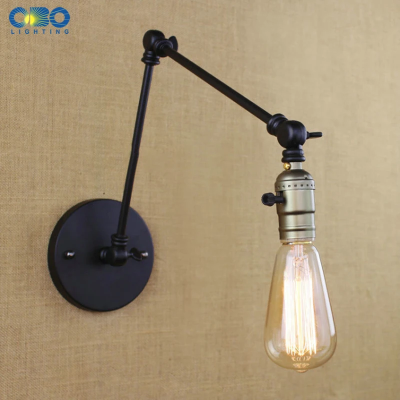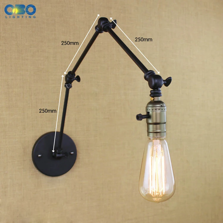 Простой винтажный гибкий железный светильник с выключателем, настенный светильник для спальни, фойе, комнатное Освещение E27, держатель для лампы 110-240 В, бесплатная доставка