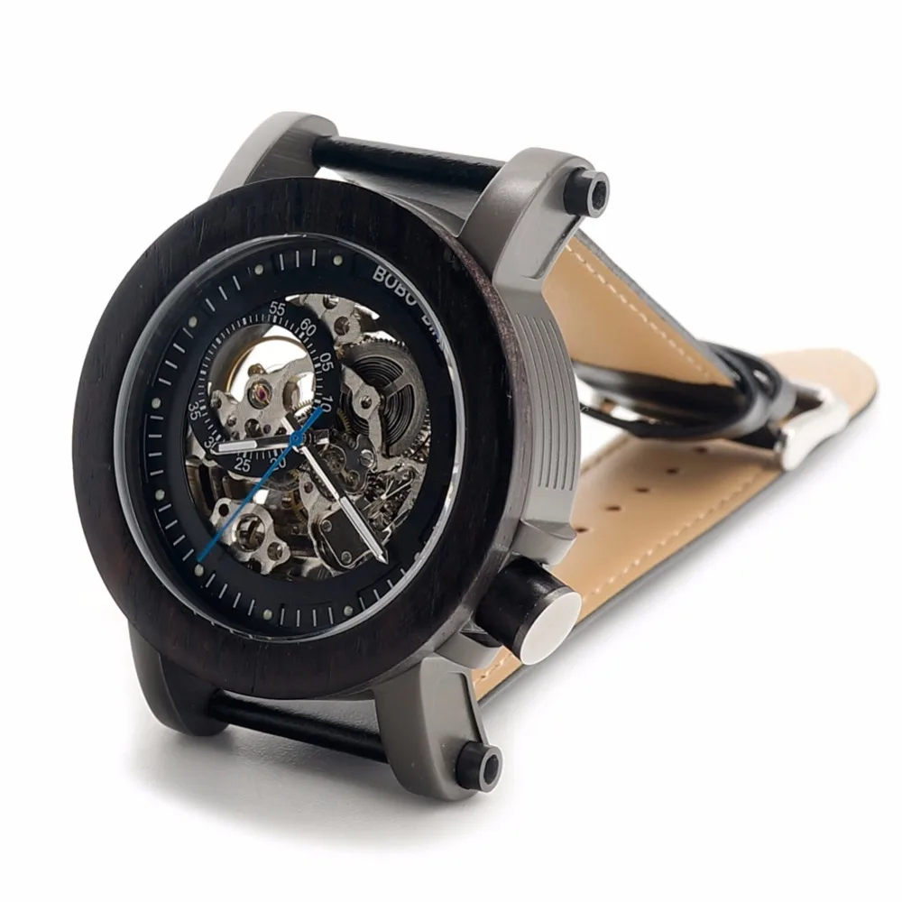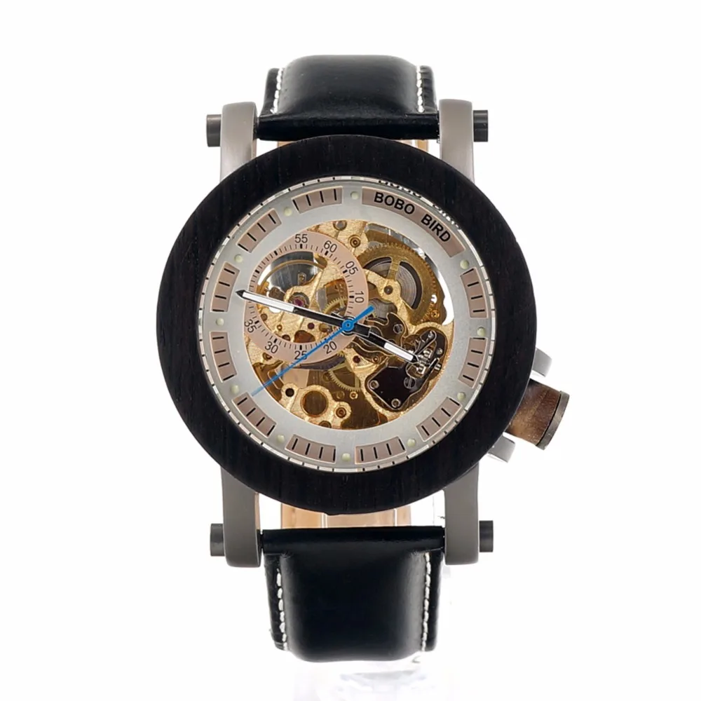 Бобо Птица Автоматический self-ветер механические мужчин деревянные часы кожаный ремешок Роскошные Uomo Orologio может дропшиппинг Cf-K10 K11 K14
