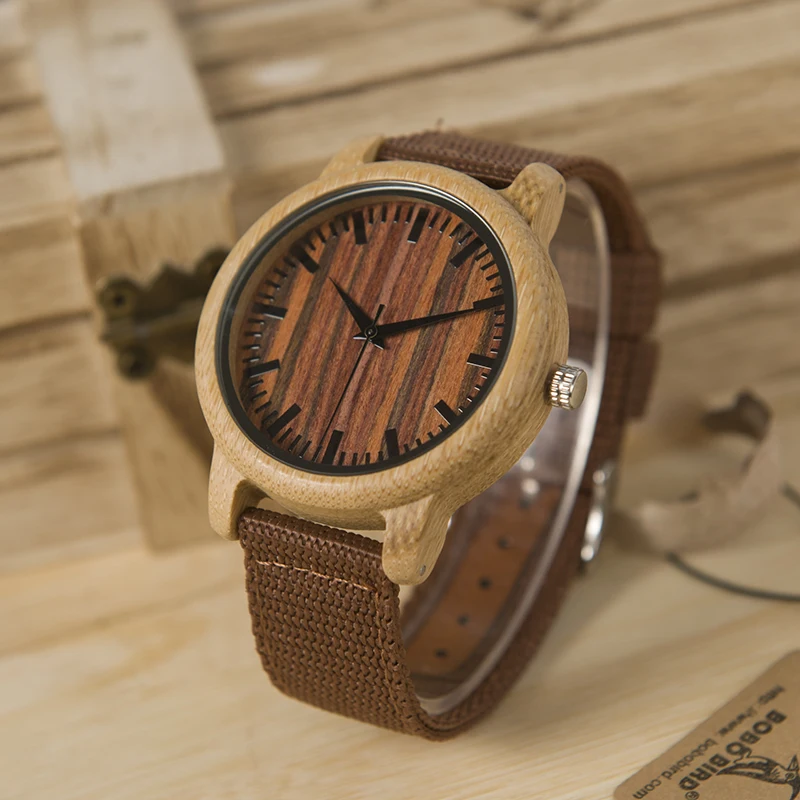 Часы BOBO BIRD LD10, женские и мужские кварцевые, с красным нейлоновым ремешком, из бамбукового дерева, 2035