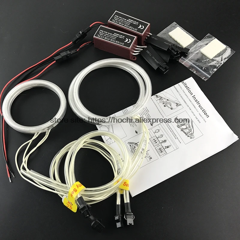 В: из чего изготовлены кольца? О: HochiTech CCFL-комплекты Фар Halo используют технологию холодного катода флуоресцентного освещения XE, которая обеспечивает плавное и ровное освещение halo. С холодным катодом (CCFL) ореолов Ожидаемый срок службы 50000 часов непрерывного использования и поставляется с пожизненной гарантией. CCFL Halos требует внешнего источника питания. HochiTech "XE" силовые инверторы включены в каждую систему HochiTech CCFL Halo Kit.