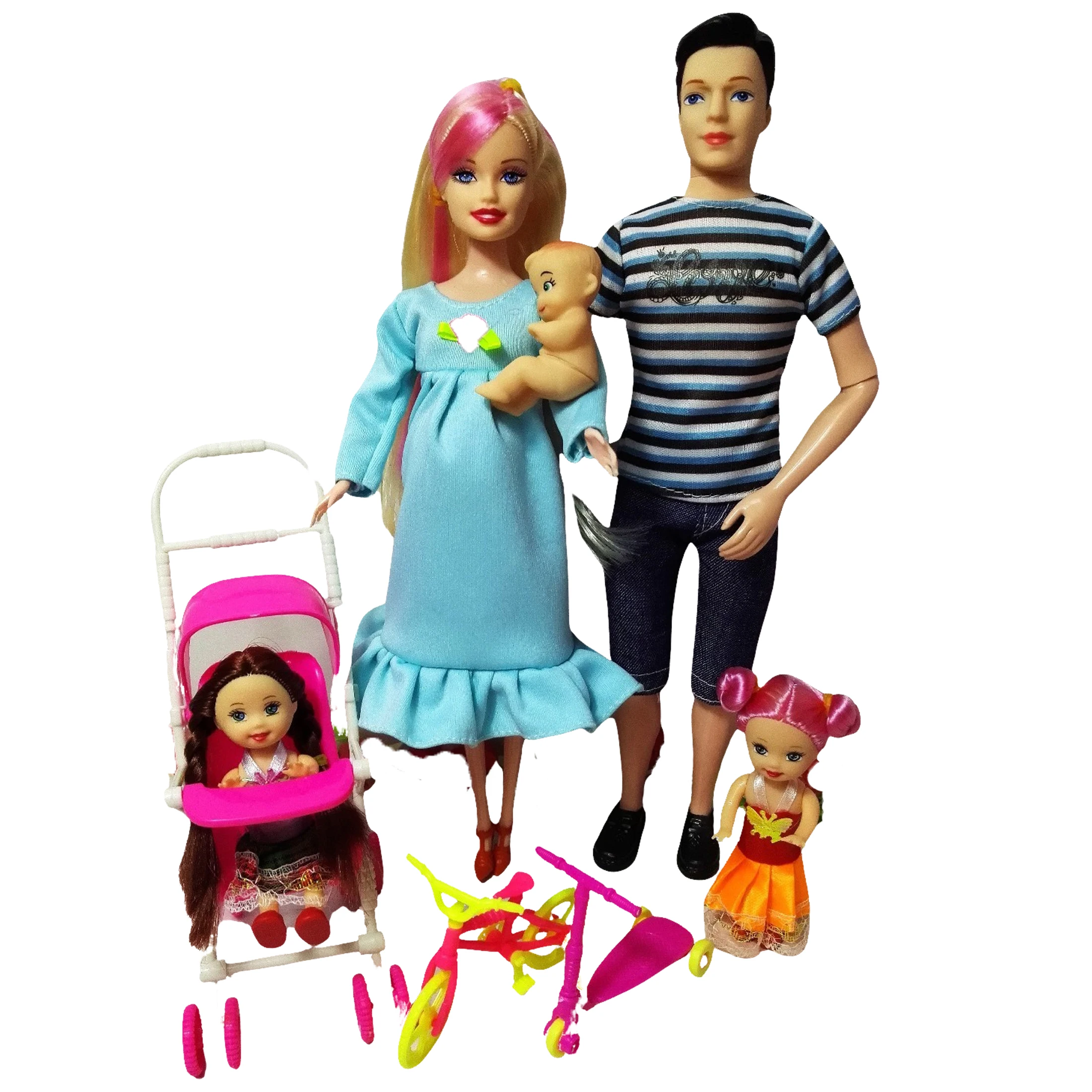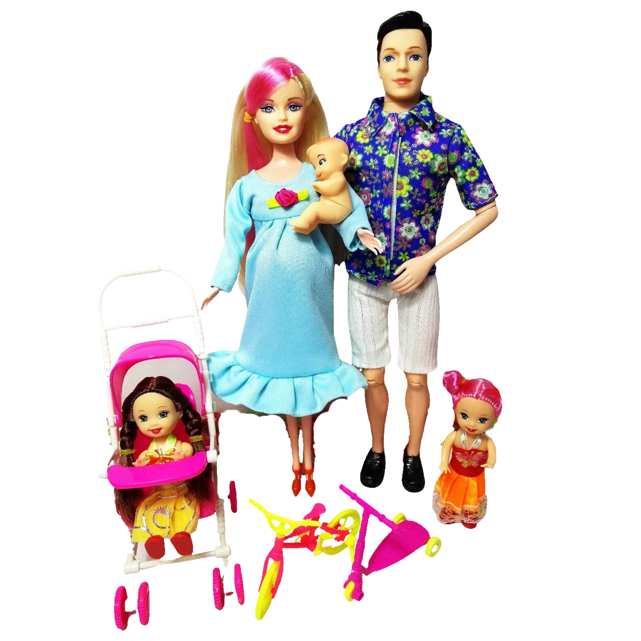 Игрушки семья 5 человек куклы костюмы 1 мама/1 Папа/2 маленькая девочка Келли/1 ребенок сын/1 детская коляска настоящая Беременная кукла подарки