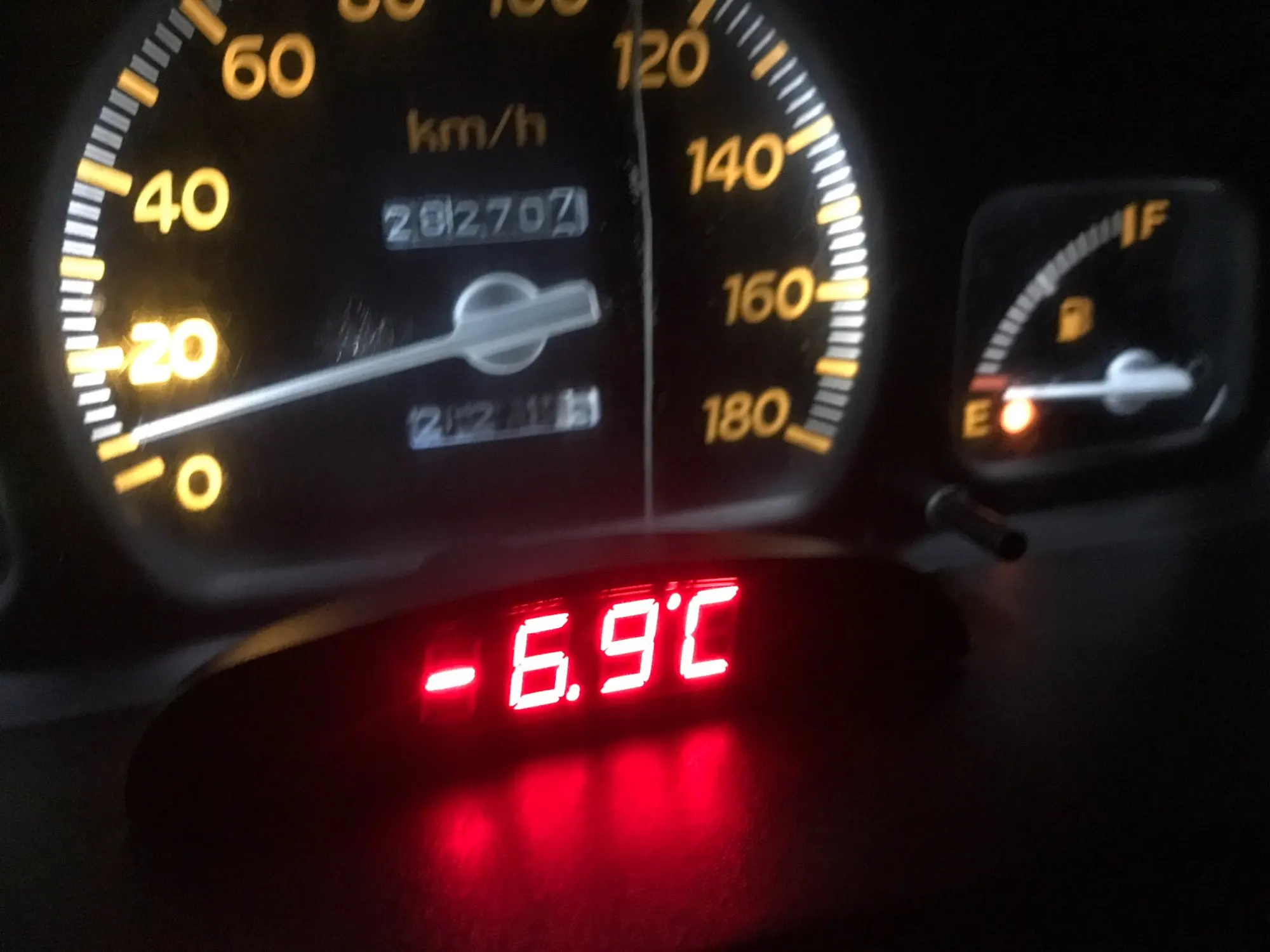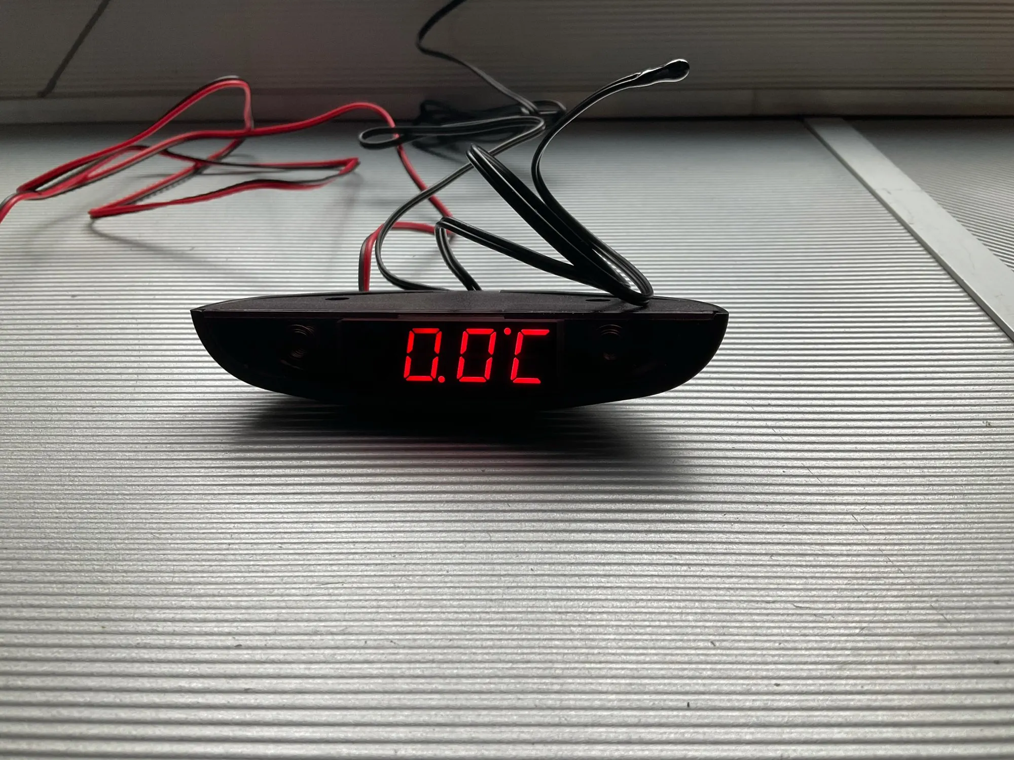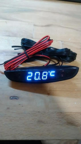 Подключил к ACC. Провод с салонной термопарой укоротил, теперь на пару см. торчит из тушки, мне больше не нужно. На экран наклеил тонировку 35%, что бы не видет требуху, да и свечение стало более "благородным" без засветки. Использую как наружный термометр. Показания точные только в движении, либо на холодную. Т.к. я установил термопару между бампером и подкрылком, при остановке теплый воздух из моторного отсека всё-таки успевает подогреть её (термопара очень чувствительна).