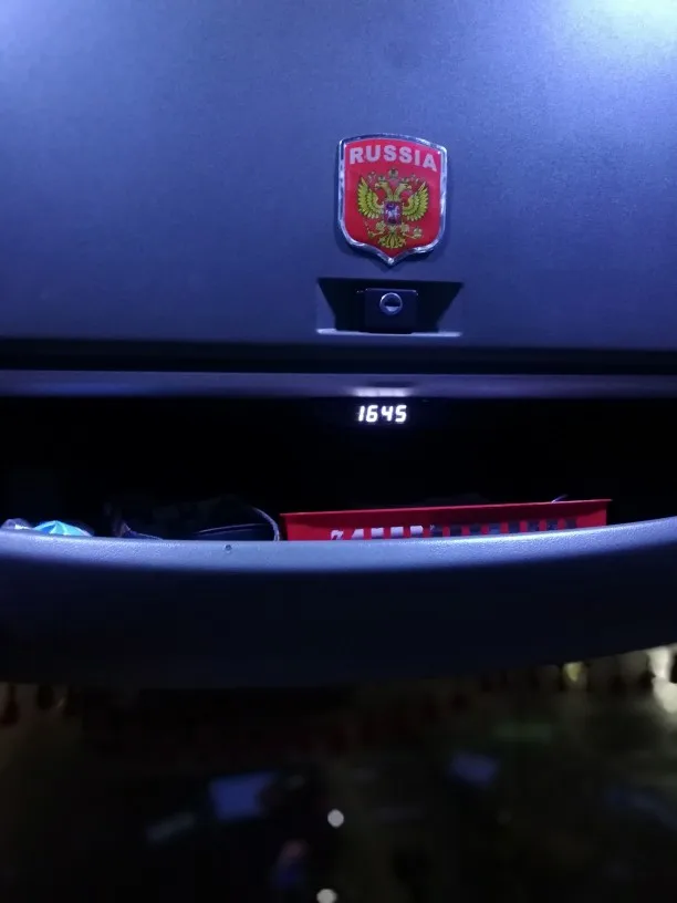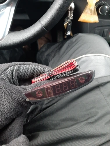 Часы - Бомба! Давно искал на потолок, да ещё и с белой подсветкой, со всеми температурами и вольтажём. Работает всё шикарно, разобрался сразу. Температурный датчик показывает верно, проверял на втором авто Мерседес с родным датчиком. Установил на потолок с помощью скотча, который идёт в комплекте, только на него приклеил липучку ( на фото есть ) , потолок ворсистый сразу прилип и снять легко. Датчик уличный закрепил на перемычку за бампером перед радиатором, салонный под панелью приборов. Посылка пришла за 5 дней. Респект продавцу!!!