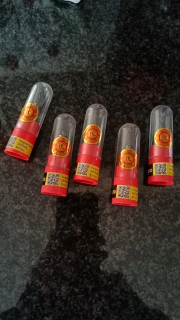 Товар пришел быстро. Фрезы все целые, но пеналы некоторые поломаны. Это не критично. Лучше конечно хотя бы картоном обварачивать, будет надежнее. На ощупь фрезы острые с ровной заточкой. Попробую, отпишусь.