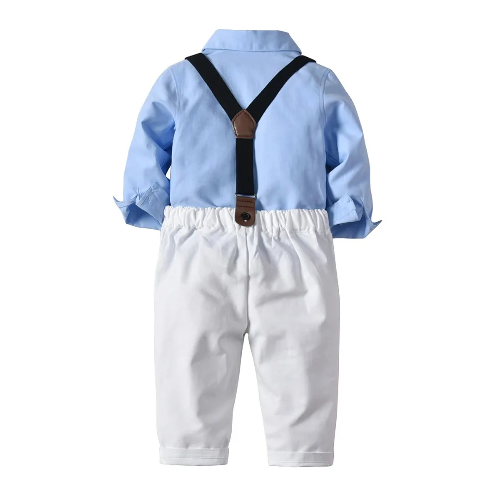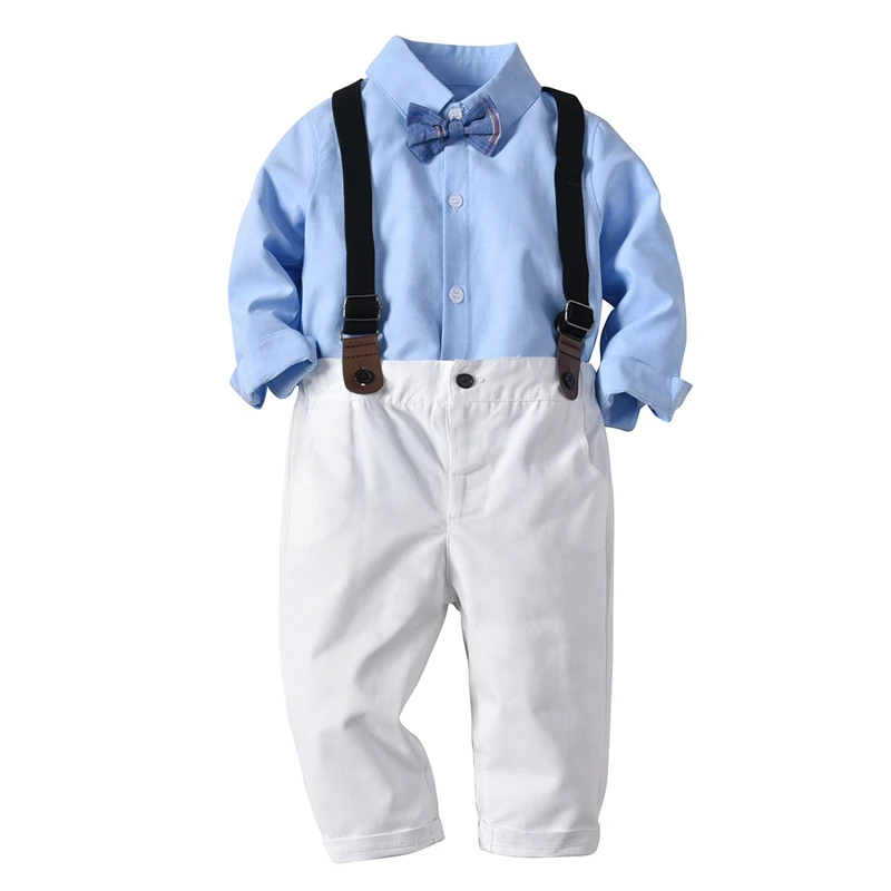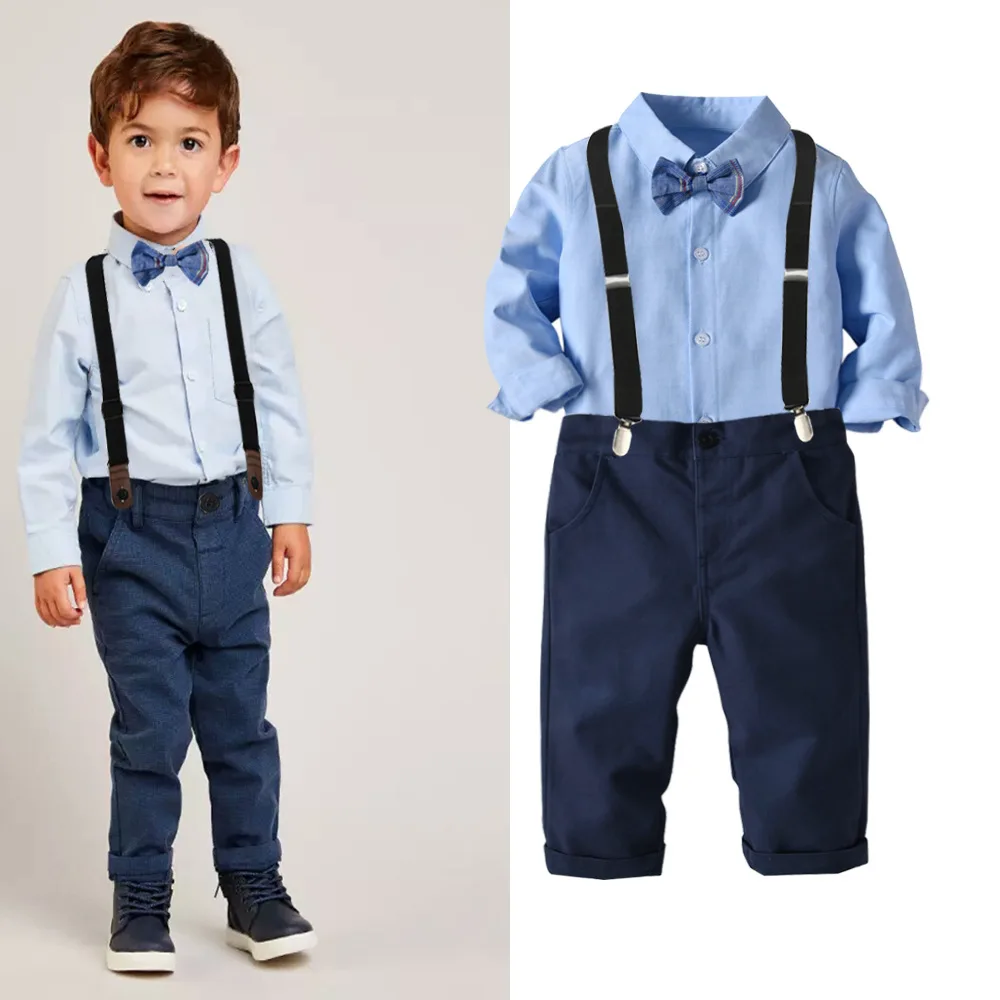 Детский костюм для мальчиков, синяя рубашка с длинным рукавом, брюк...