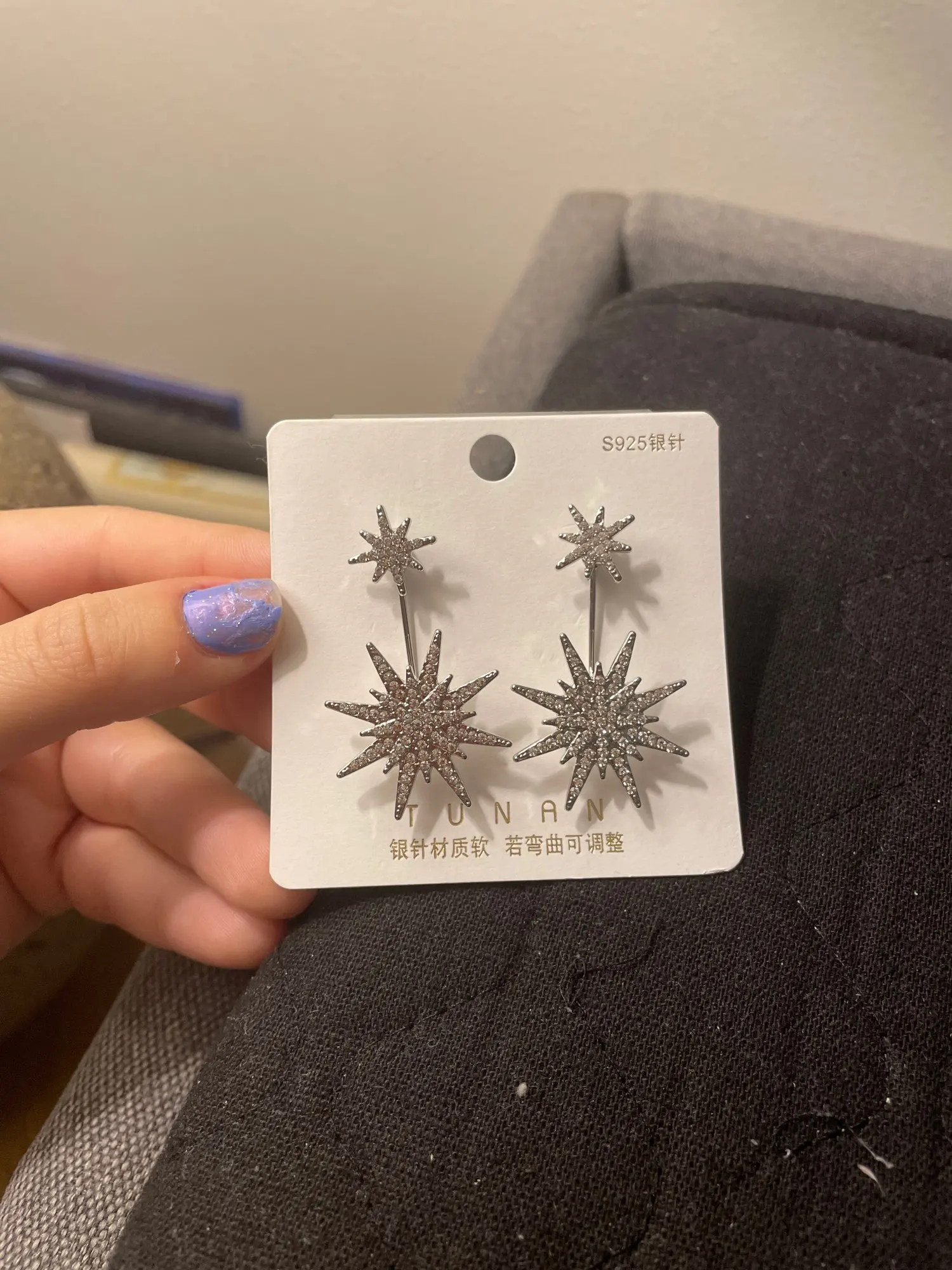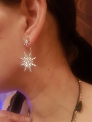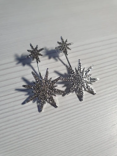 шикарные серьги, смотрятся огонь!!! можно как просто гвоздики маленькие звездочки носить, можно вместе! очень удобно!