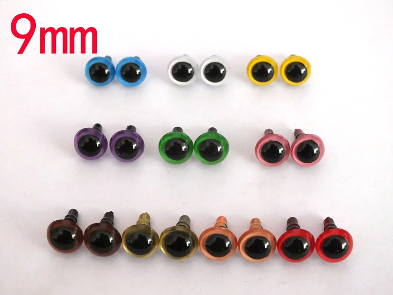 9 мм, 10 цветов, пластиковые безопасные глаза для Мишки Тедди, куклы, животные, марионетки, поделки-100 шт.