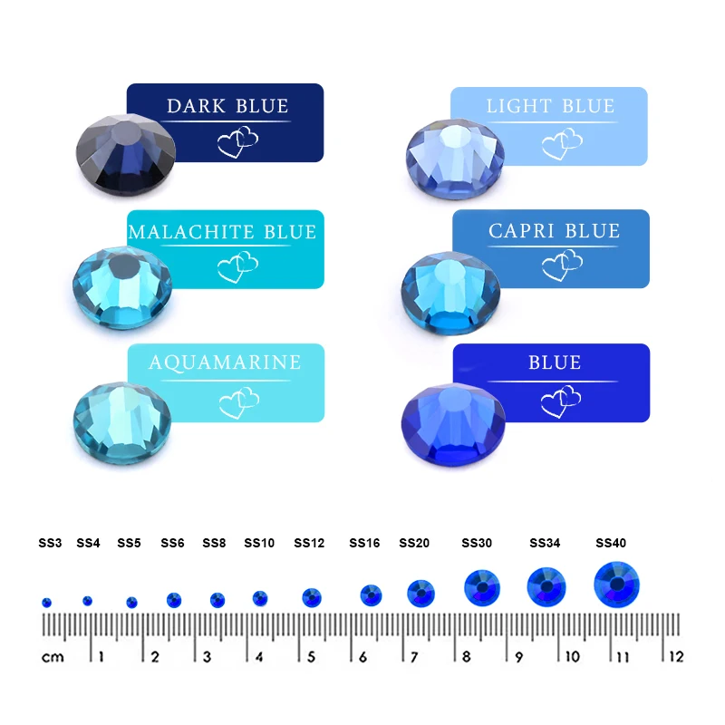 Синий ЦирконКапри Синие стразы для ногтевого дизайна 1,3 мм-6,5 мм ...
