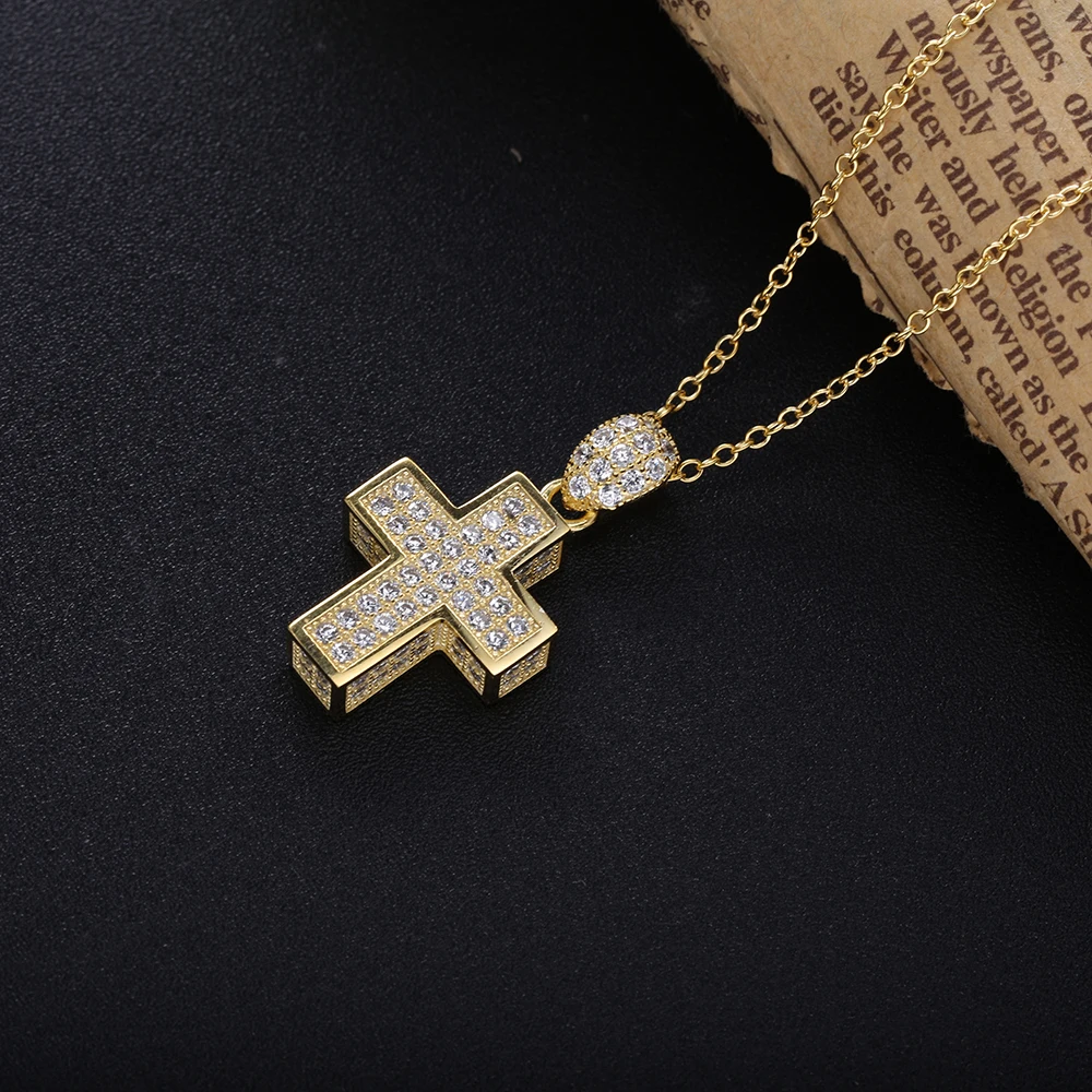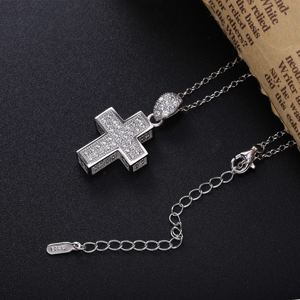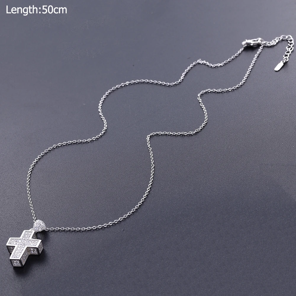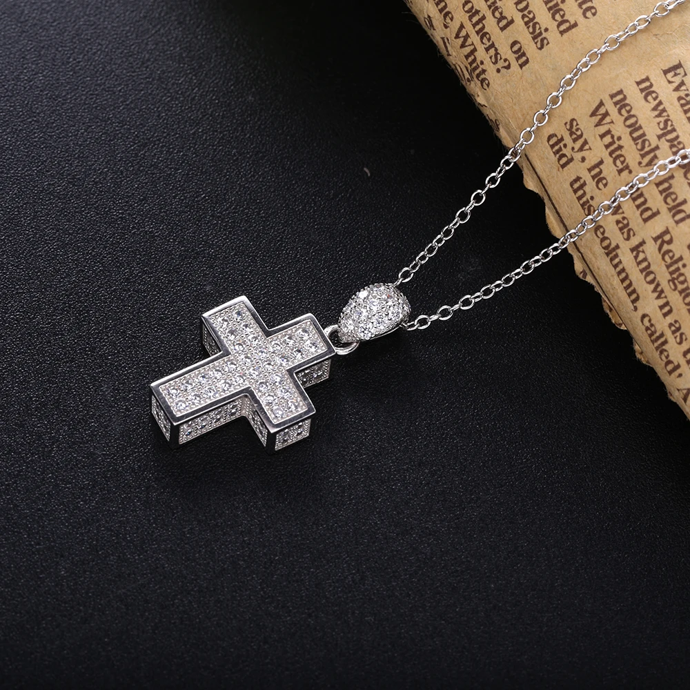 Женская подвеска-крест из настоящего серебра 100% пробы, толстая подвеска-крест с фианитами ААА, 925 пробы