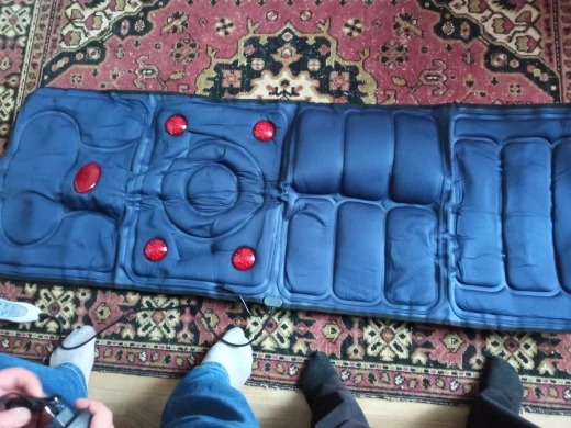 В принципе, неплохая вещь за свои деньги, но не ждите прям хорошего глубокого массажа от него. В матрасе стоят вибромоторчики, которые делают лёгкий расслабляющий массаж. Заказ до красноярска шёл 2 месяца, долго висел в китае где-то на границе, потом резко оказался в екатеринбурге и там уже довольно быстро доехал. После первого использования почему-то перестал работать один вибромоторчик в районе поясницы, но после мягкого постукивания снова заработал.