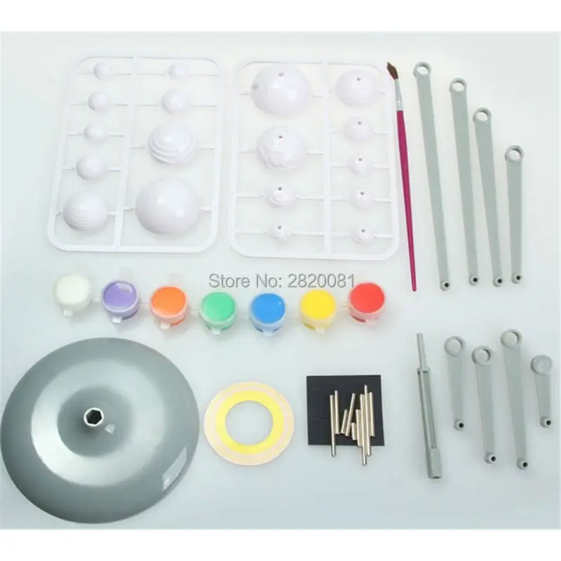 3D солнечной системы модель «планетарий» 1 щетка 1 полоска горшков для краски и светящаяся краскаА-образная стойкаВращающийся оружия 9 стальные стержни Наждачной бумагой Сатурн кольцо шаблон Подробные инструкции и Бонусная настенная схема солнечной системы Технические характеристики: Цвет: многоцветный Пакет включает в себя: 1 x модель «планетарий» для солнечной системы