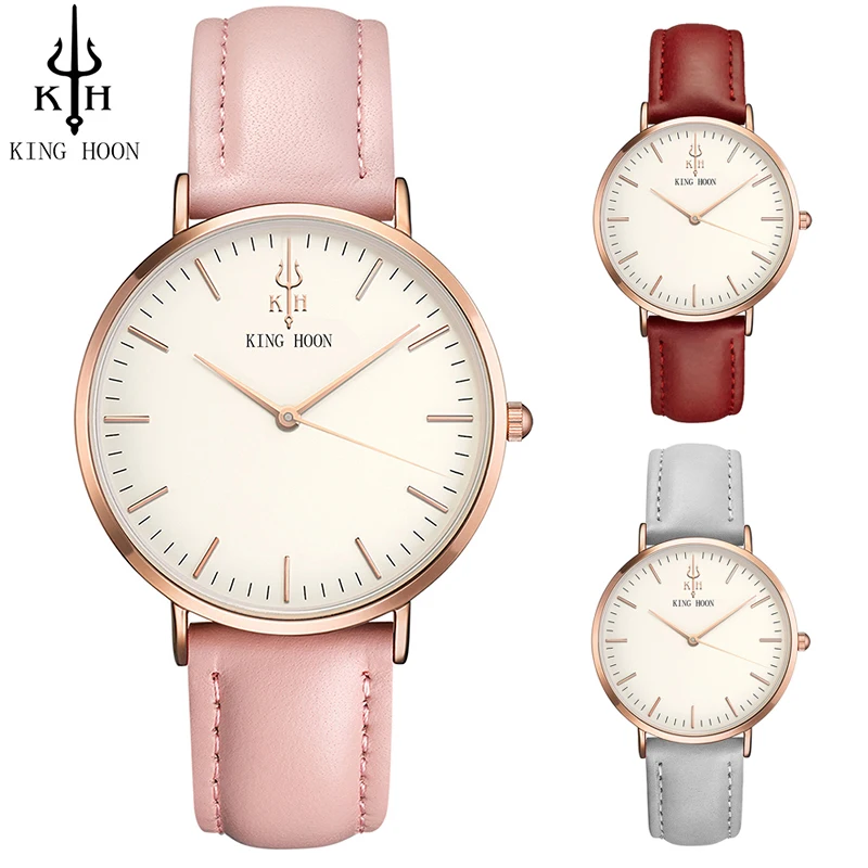 Женские часы KING HOON, лидер продаж 2017 года, тонкие кварцевые часы из нержавеющей сталикожи с ремешком из розового золота, повседневные часы, Montre Femme