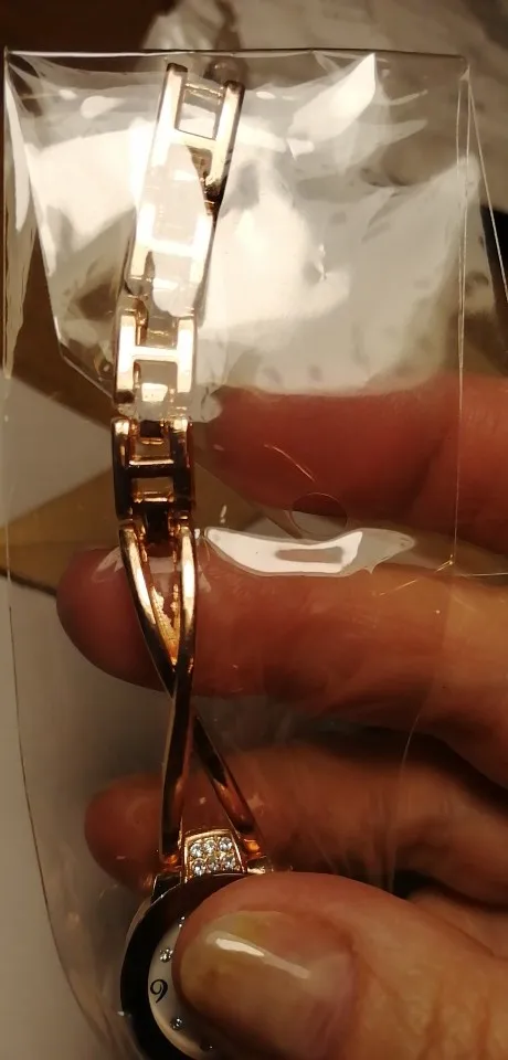 Покупаю такие или похожие часы и себе и в подарок. По цене - замечательно. Хватает на 2-3 года. Потом как правило встают на смерть За это время успевают надоесть-так что все прекрасно. Рука тонкая-убираю по 3 звена. Это ещё не убирала звенья. Размер циферблата полностью-2х2.5й1