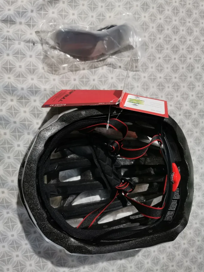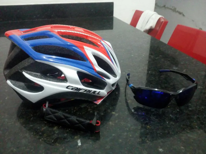 Capacete sensacional, extremamente leve e muito confortável, parece que está vestindo um boné. A cor então combinou com a bike. Entrega em 12 dias corridos em Osasco-SP. O óculos que veio de brinde e a mesma qualidade do que a Decathlon, super combinou. Estou muito satisfeito com a compra e recomendo fortemente o vendedor e produto.