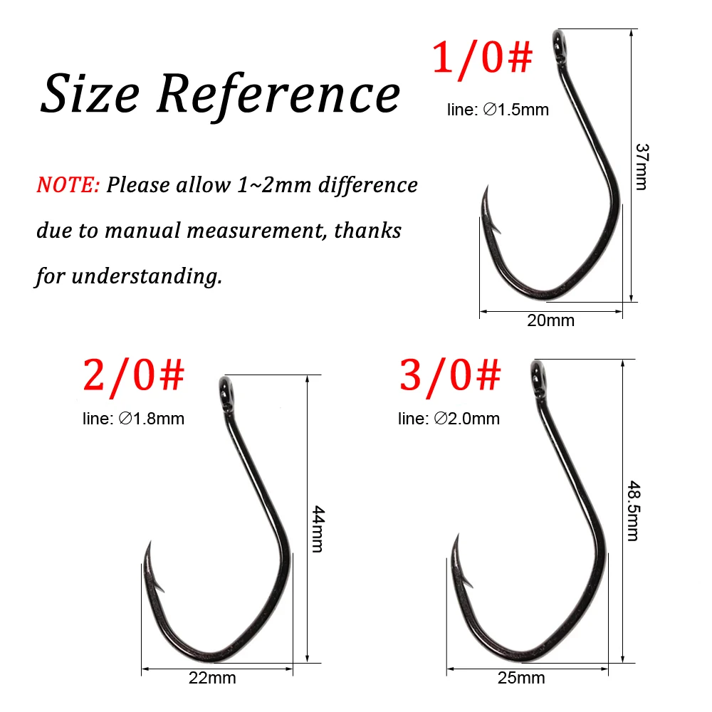 Размер: #1/0 , #2/0 , #3/0 Материал: Высокоуглеродистая сталь Цвет: черный никель Упаковка: 100 шт./лот Примечание: возможны отклонения на 1-2 мм из-за ручного измерения, спасибо за понимание.