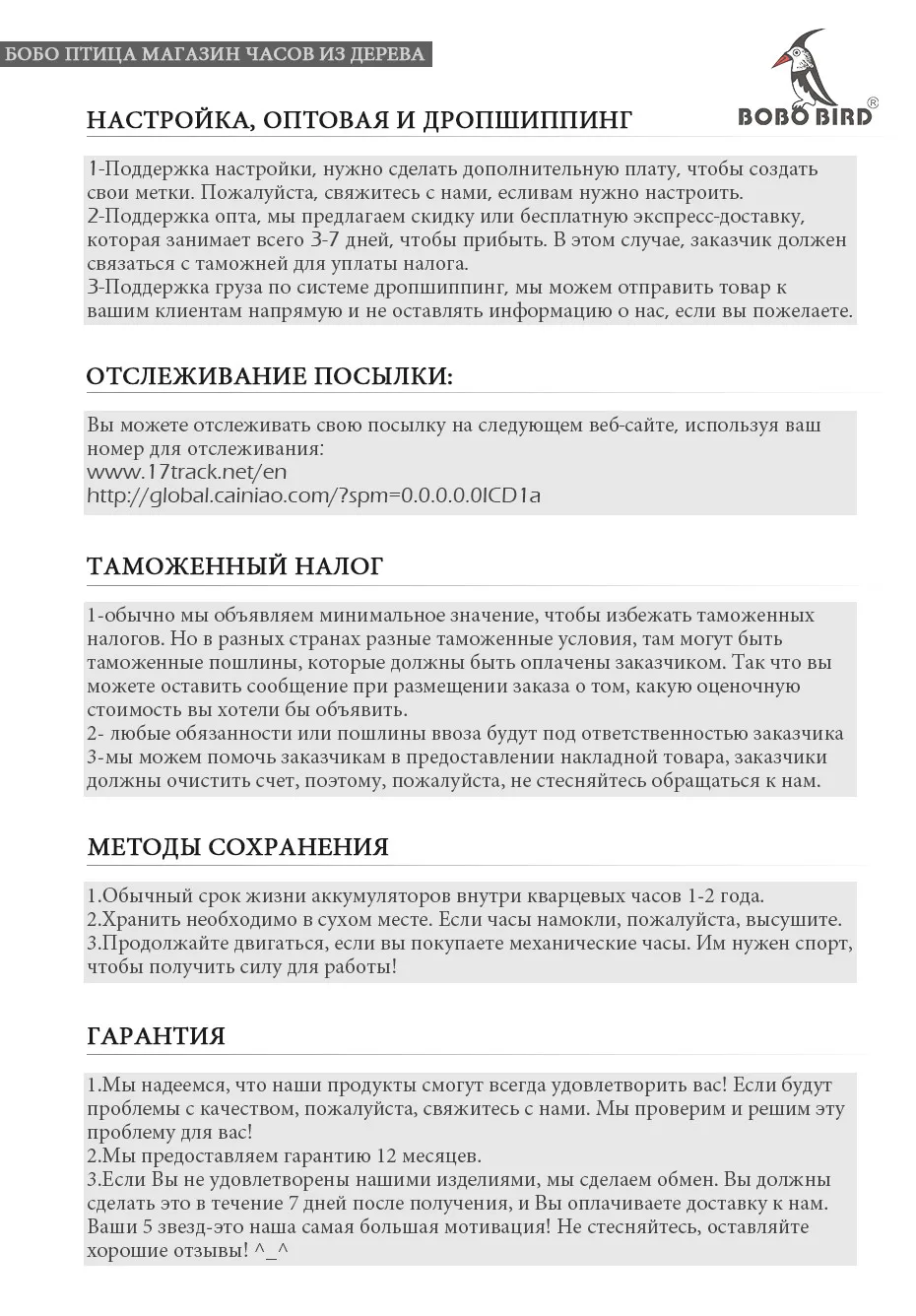 BOBO BIRD Wooden Watches Store - Надежность 96.25%