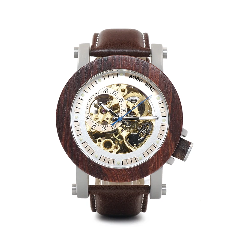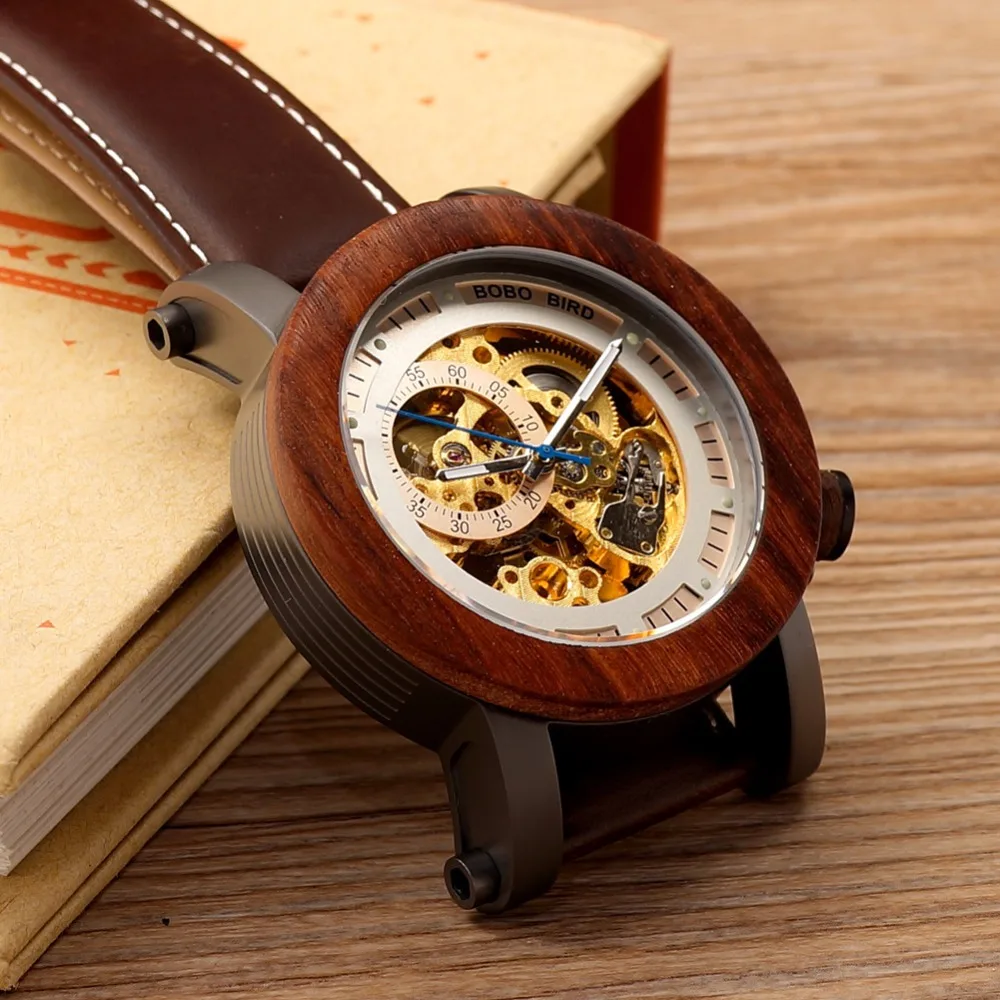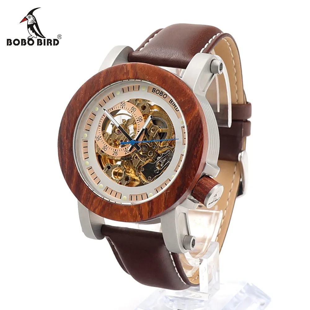 Бобо птица CfK12 механическая красный sandalwooden часы винтажные Роскошные мужские часы кожаный ремешок Повседневная Montre Homme