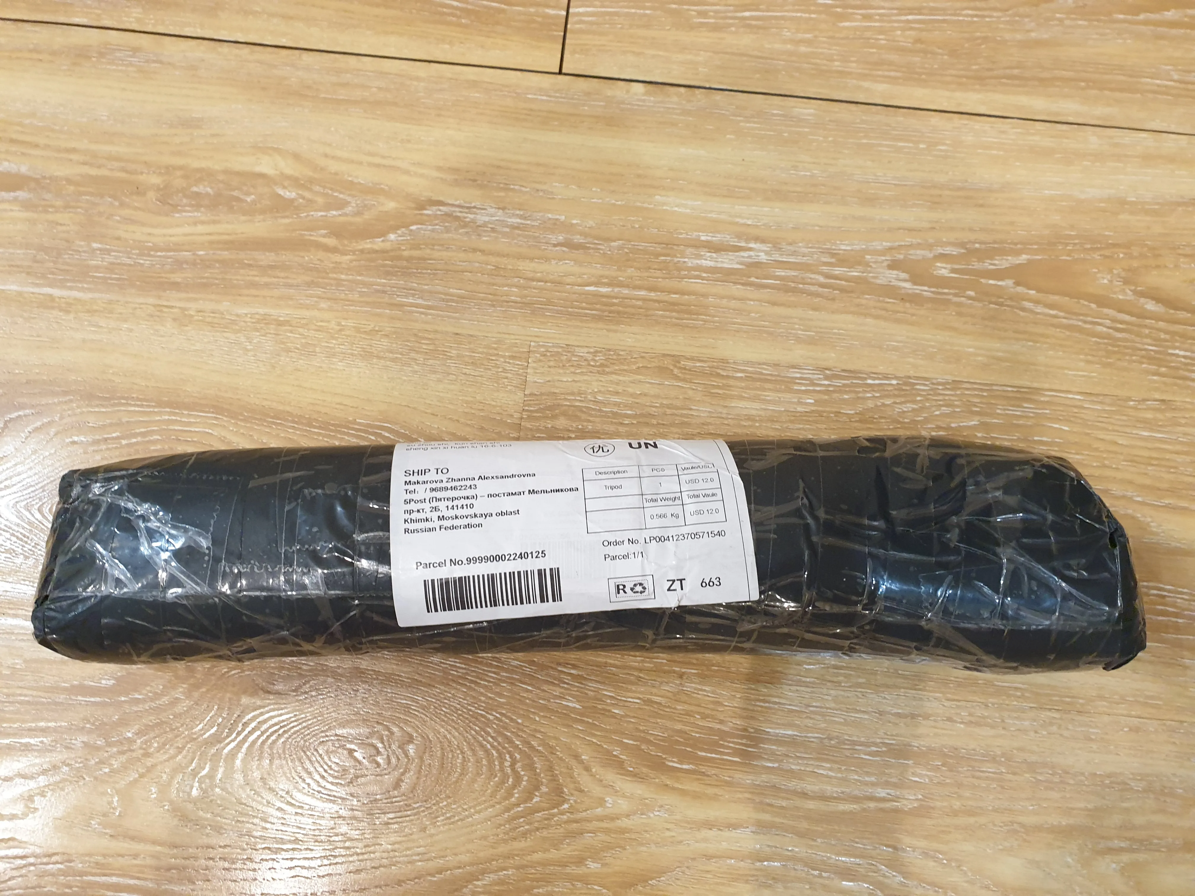 Заказывала товар 20.09.2020, но по какой-то причине товар даже не прошёл Китайскую таможню и был возвращён продавцу. Спор не стала открывать. Попросила продавца направить товар ещё раз. После повторной отправки посылку получила через 14 дней. Штатив крепкий и устойчивый. детали тоже крепкие. Продавец положил крепление для телефона и чехол для переноски штатива. У меня уже есть этой фирмы селфи палка ей уже 5 лет она как новая.