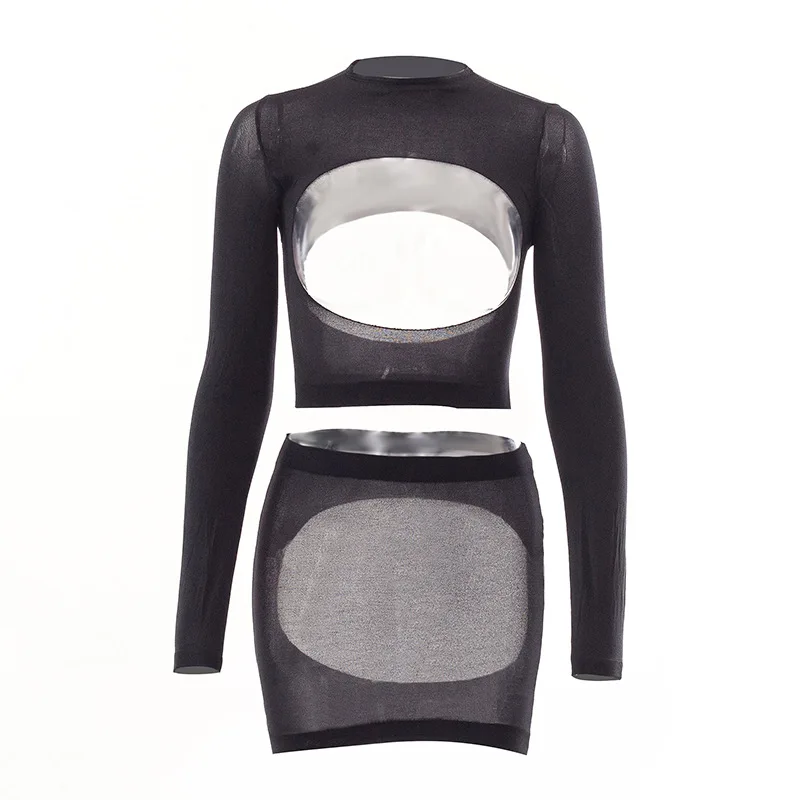 Сексуальный комплект нижнего белья, прозрачный топ с открытой грудью и длинными рукавами, с открытыми ягодицами, мини-юбка
