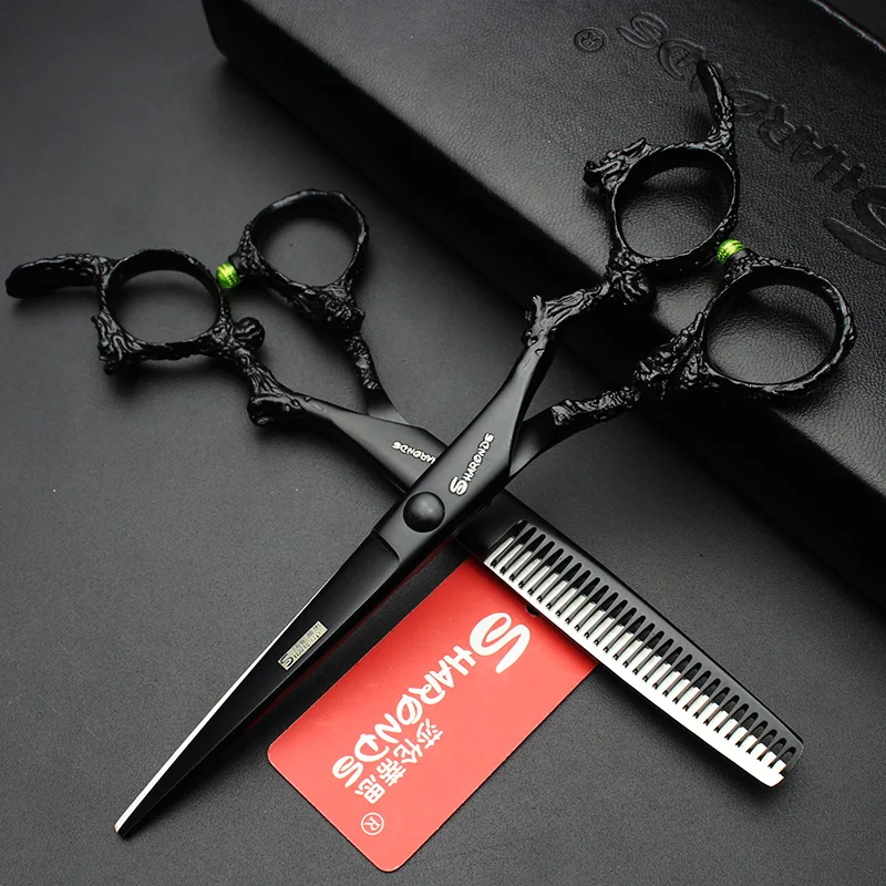 Черные 6-дюймовые ножницы для волос sharond, ведущая ручка, Япония, 440c, ножницы для волос из нержавеющей стали, набор режущих элементов