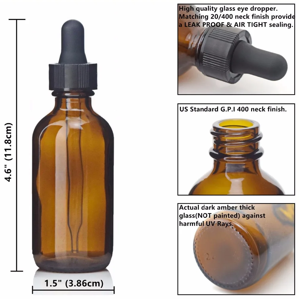 Флакон-капельница для Органических эфирных масел стеклянная пипетка для закапывания в глаза, 6 шт., 60 мл, янтарно-коричневый, жидкость для массажа