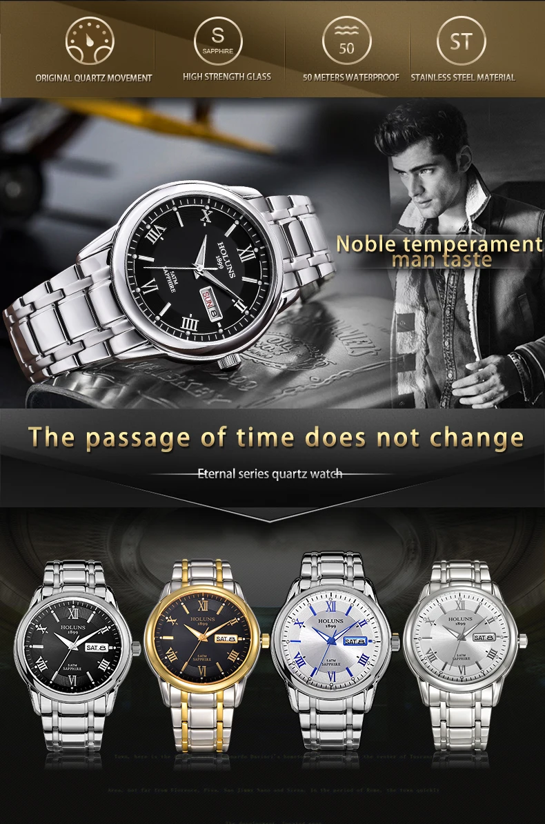 Мужские автоматические часы HOLUNS, водонепроницаемые, 5 АТМ, из нержавеющей стали