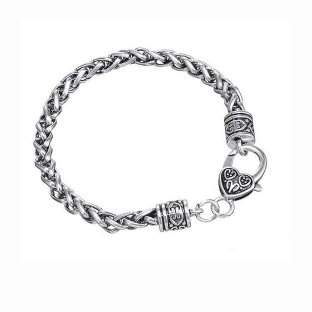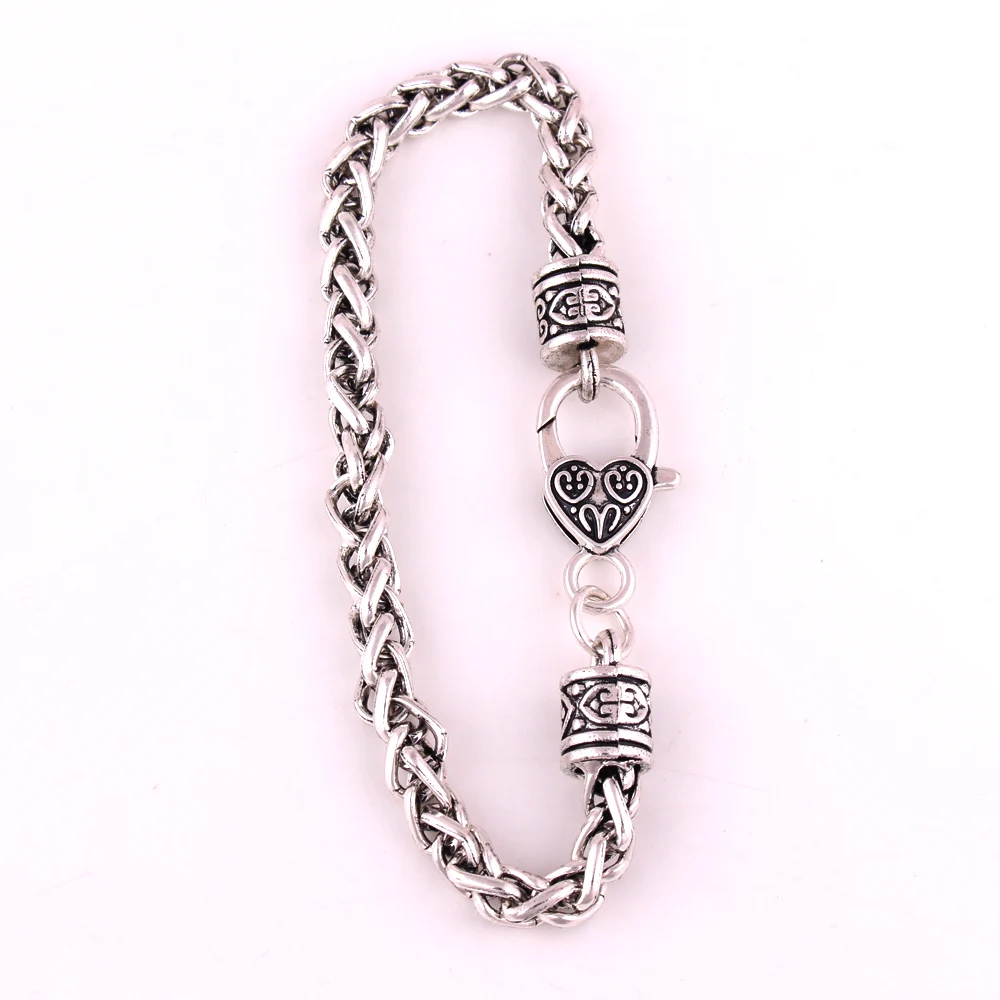 Прямая поставка, античный посеребренный браслет с застежкой в виде когтей в форме сердца, пшеничный браслет и ожерелье, тяжелая цепочка, длина 20 см