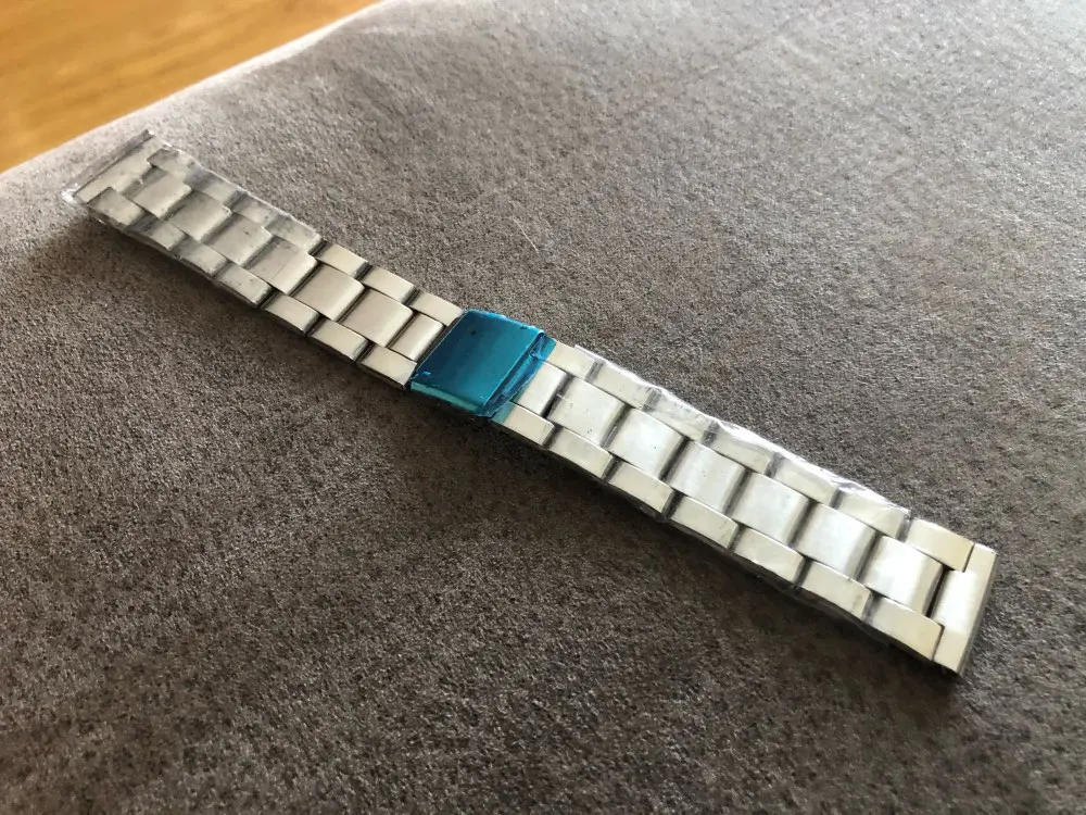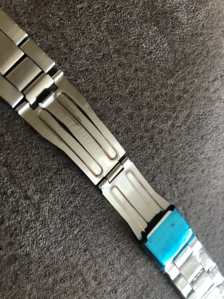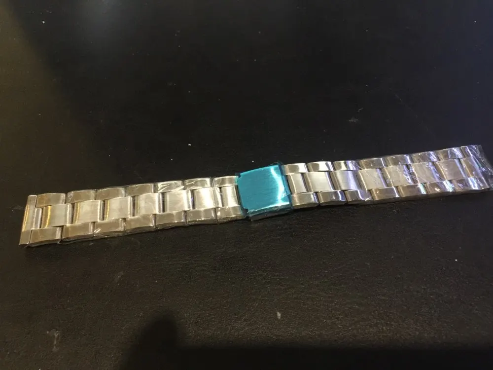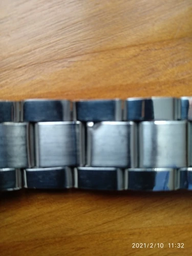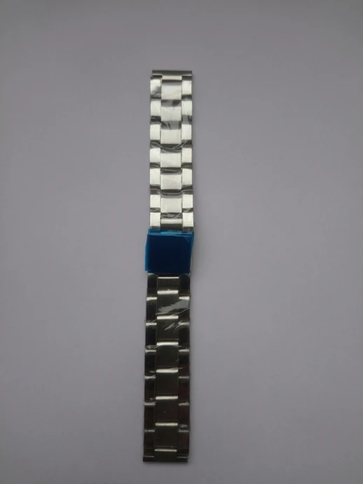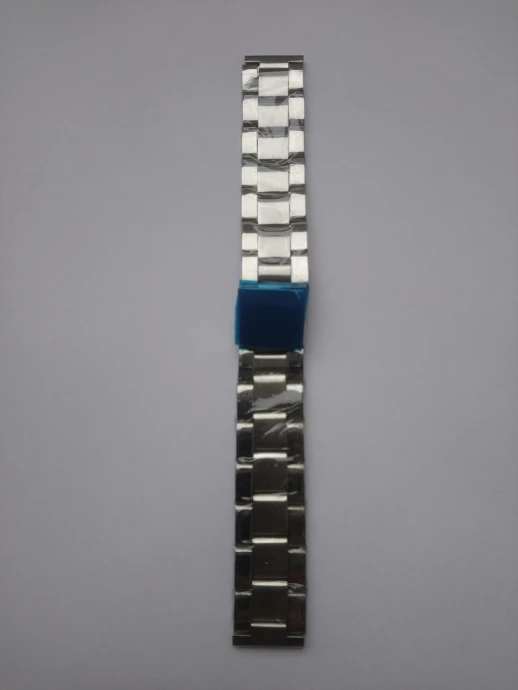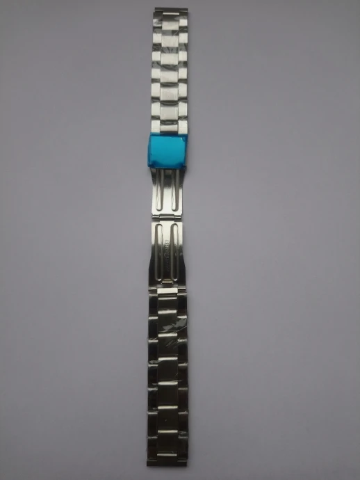 Браслет прибыл весьма быстро. Точно подошёл размер, который заказывал. там имеется в виду расстояние между ушками часов, посадочное место браслета. вместе с тем качество изготовления не очень, присутствовали небольшие заусенцы на звеньях. пришлось зачищать надфилем.