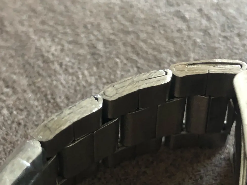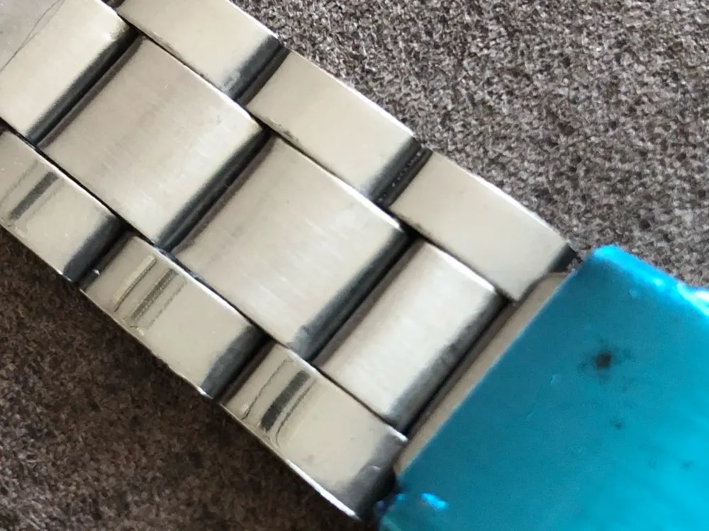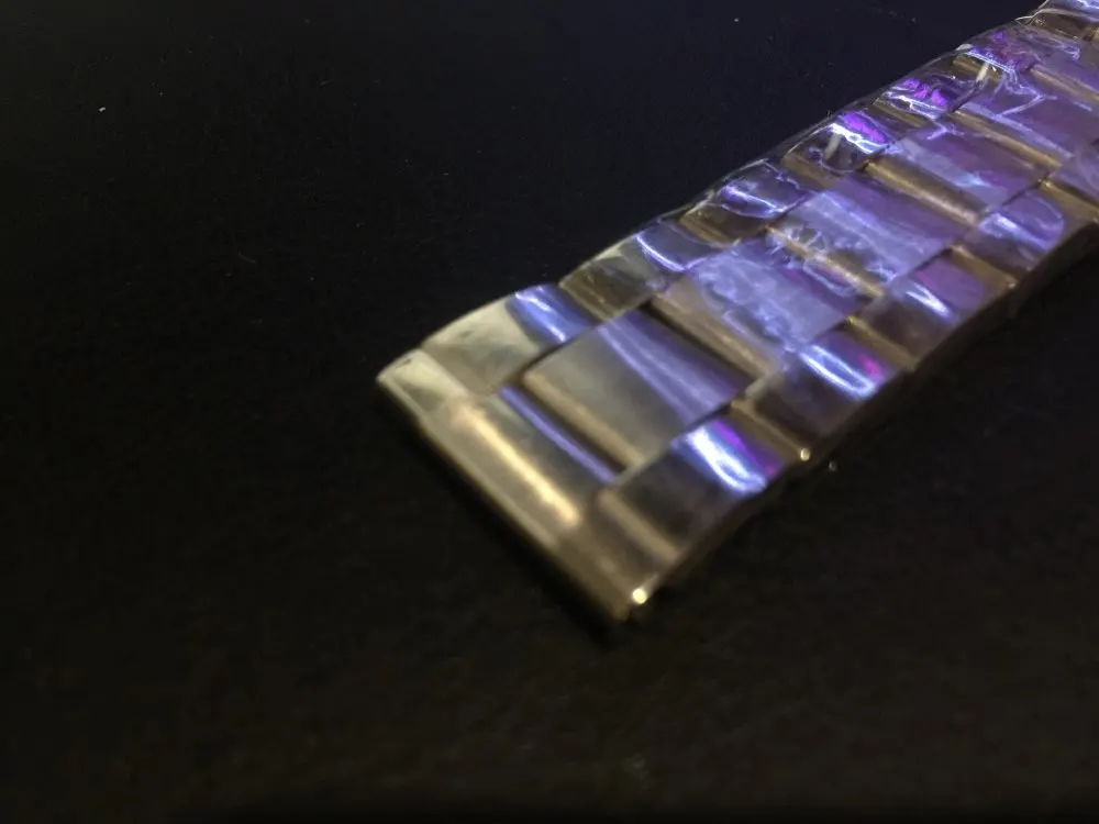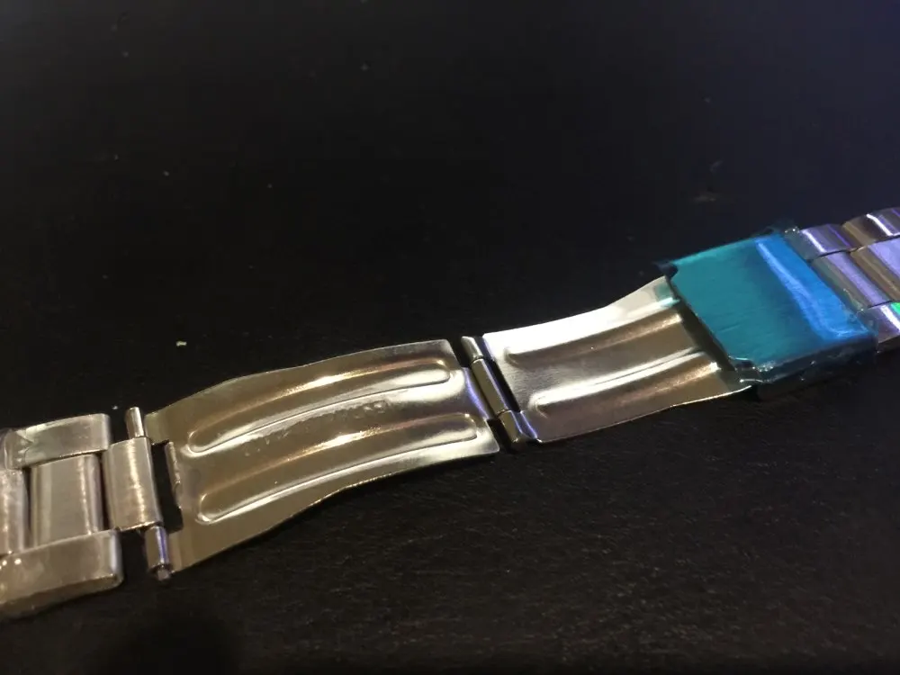 Браслет прибыл весьма быстро. Точно подошёл размер, который заказывал. там имеется в виду расстояние между ушками часов, посадочное место браслета. вместе с тем качество изготовления не очень, присутствовали небольшие заусенцы на звеньях. пришлось зачищать надфилем.