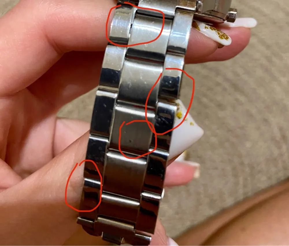 Товар пришёл очень быстро .за 11 дней.но на этом все плюсы закончились .металл очень тонкий,лёгкий ,«сделан из консервной банки».гремит браслет ,как игрушечный .в общем совсем не серьезно .об застёжку ,если постараться ,можно обрезаться.очень тонкий металл.пришел в царапинах