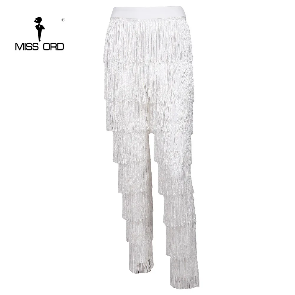 Missord 2021 Модные женские белые брюки с высокой талией и бахромой на молнии FT4799