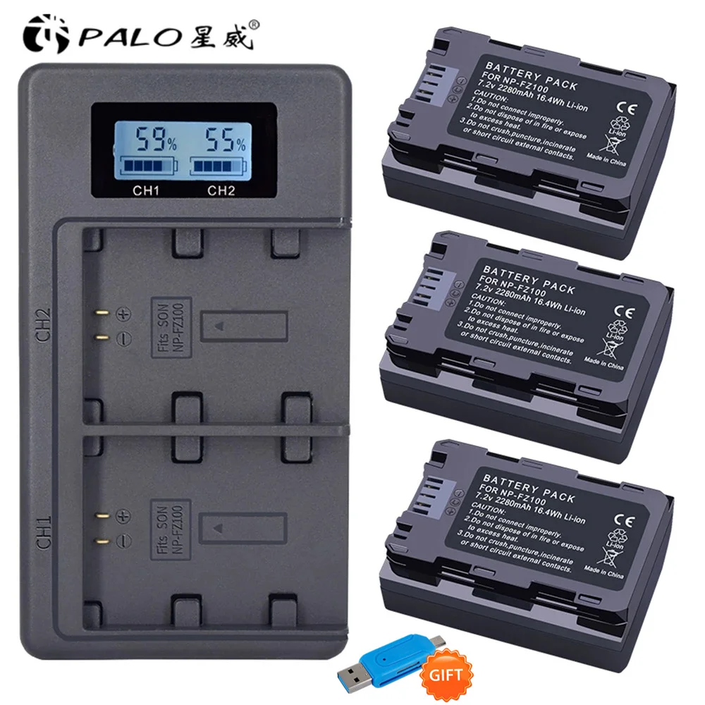 PALO NP-FZ100 NPFZ100 NP FZ100 батарея + LCD двойное USB зарядное устройство для Sony NP-FZ100, BC-QZ1, Sony a9, a7R III, a7 III, ILCE-9, A6600