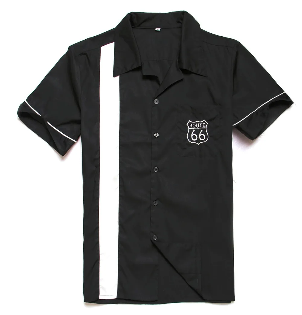 Рубашки ups с короткими рукавами, черно-белые рубашки контрастного цвета, отложные воротники, рубашка для боулинга, вечерние костюмы для сцены для мужчин, хип-хоп рок-н-ролл 1950-х, мужские рубашки с вышивкой route66, белая окантовка, roupa masculina camisas blusas, мужская рубашка hemden kleidung, Ретро винтажный дизайн, американские западные рубашки, танцевальная праздничная одежда, мужская индийская Альтернативная мода.