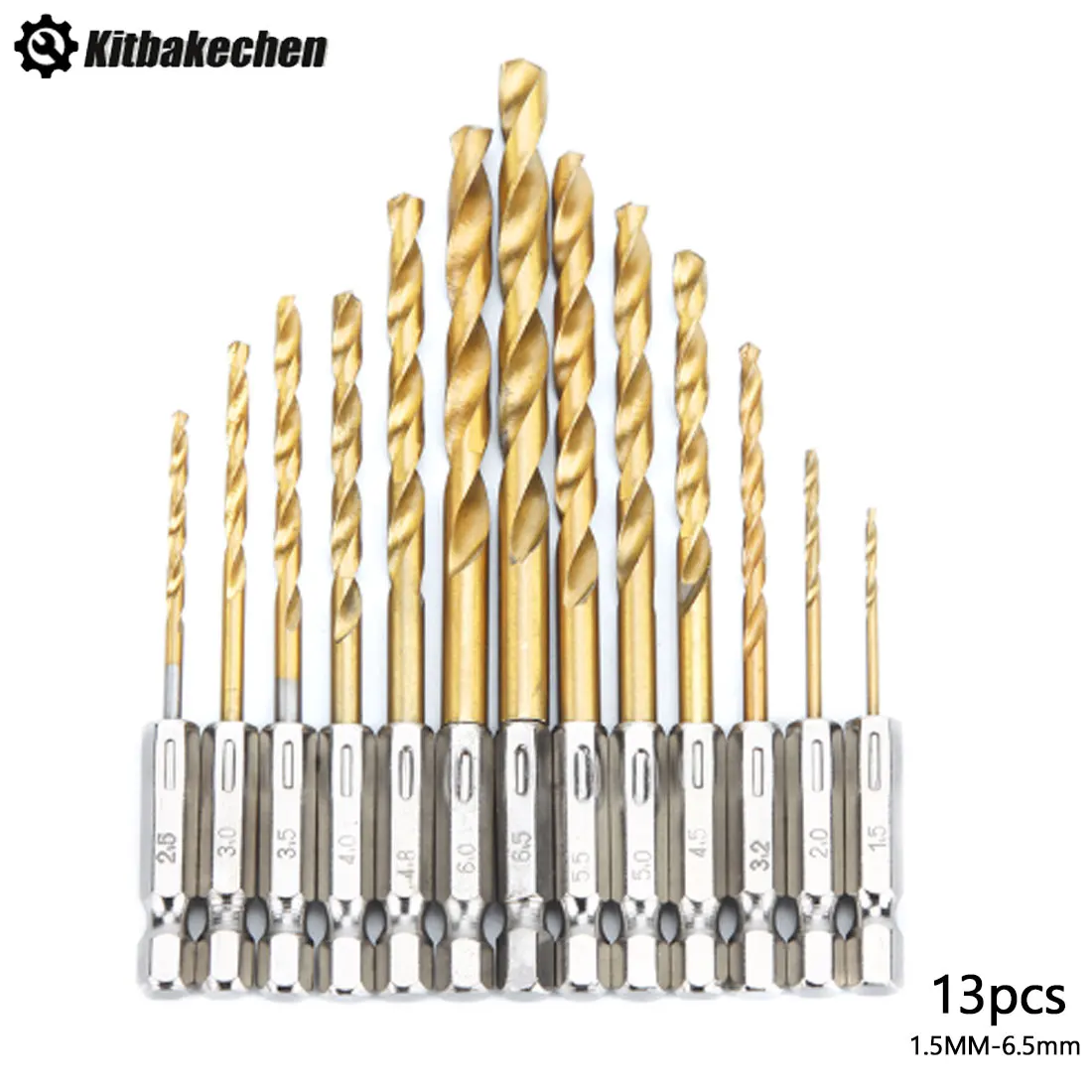 1,5-6,5 мм 13 шт. сверла с шестигранной ручкой титановые спиральные сверла наборы 14 шестигранный хвостовик для деревапластикаалюминия