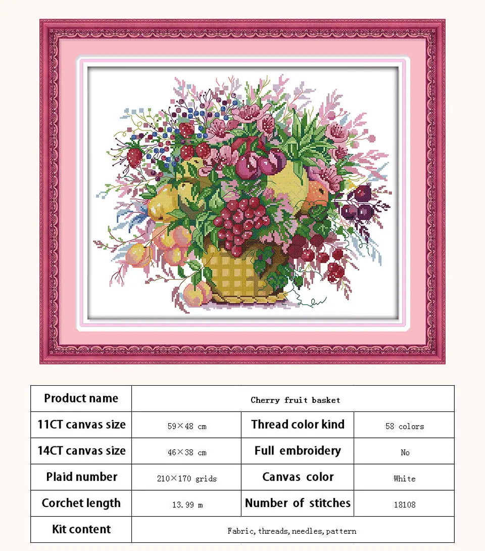 Набор для вышивки крестиком, корзина с фруктами и вишнями, 11CT, 14CT