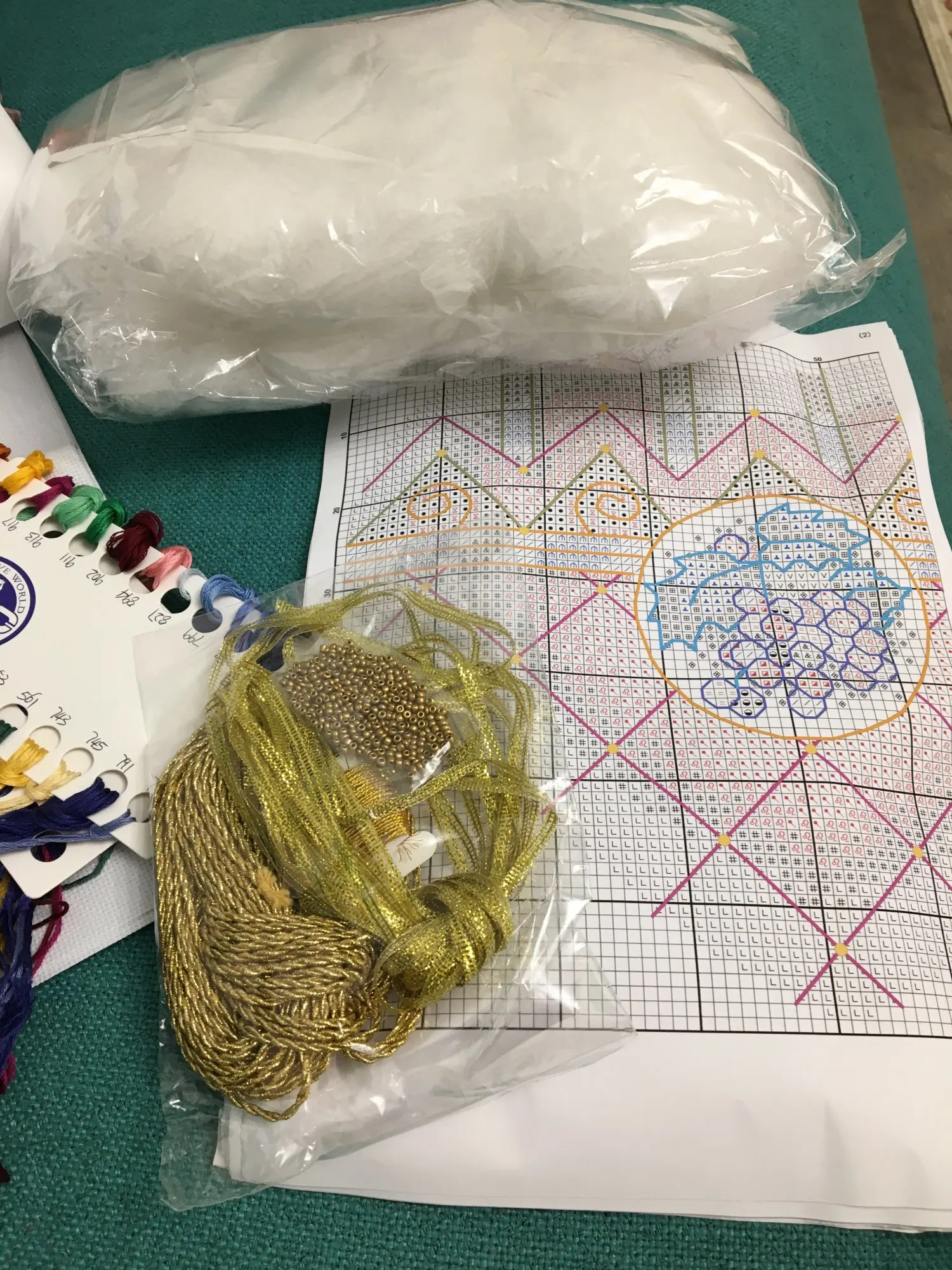 Kitsplastic canvas + cotton floss + needles + paper chart